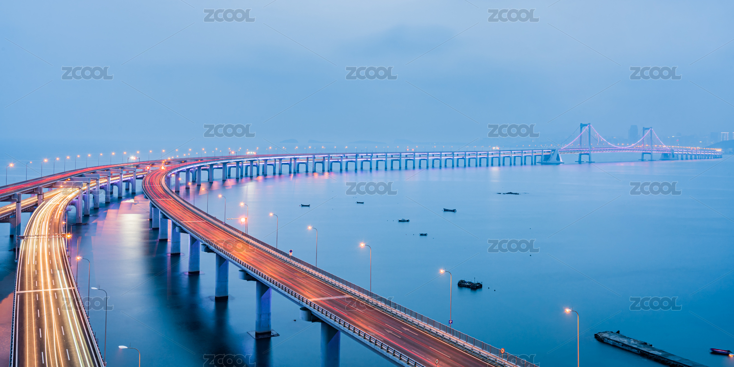 中国辽宁大连星海湾大桥和汽车车轨全景