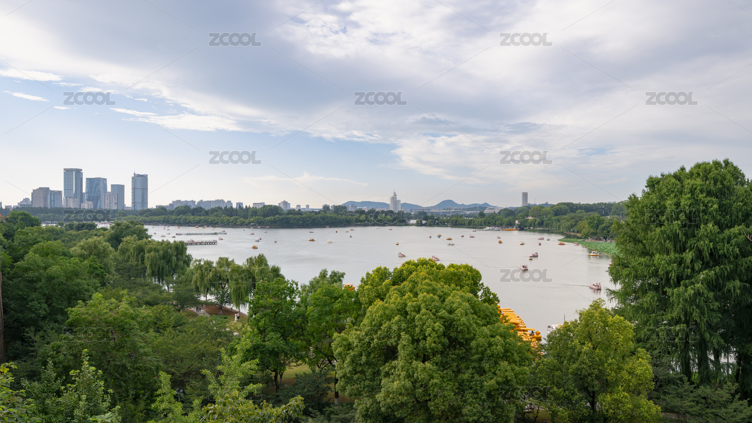 江苏省南京市玄武湖公园湖畔高楼建筑