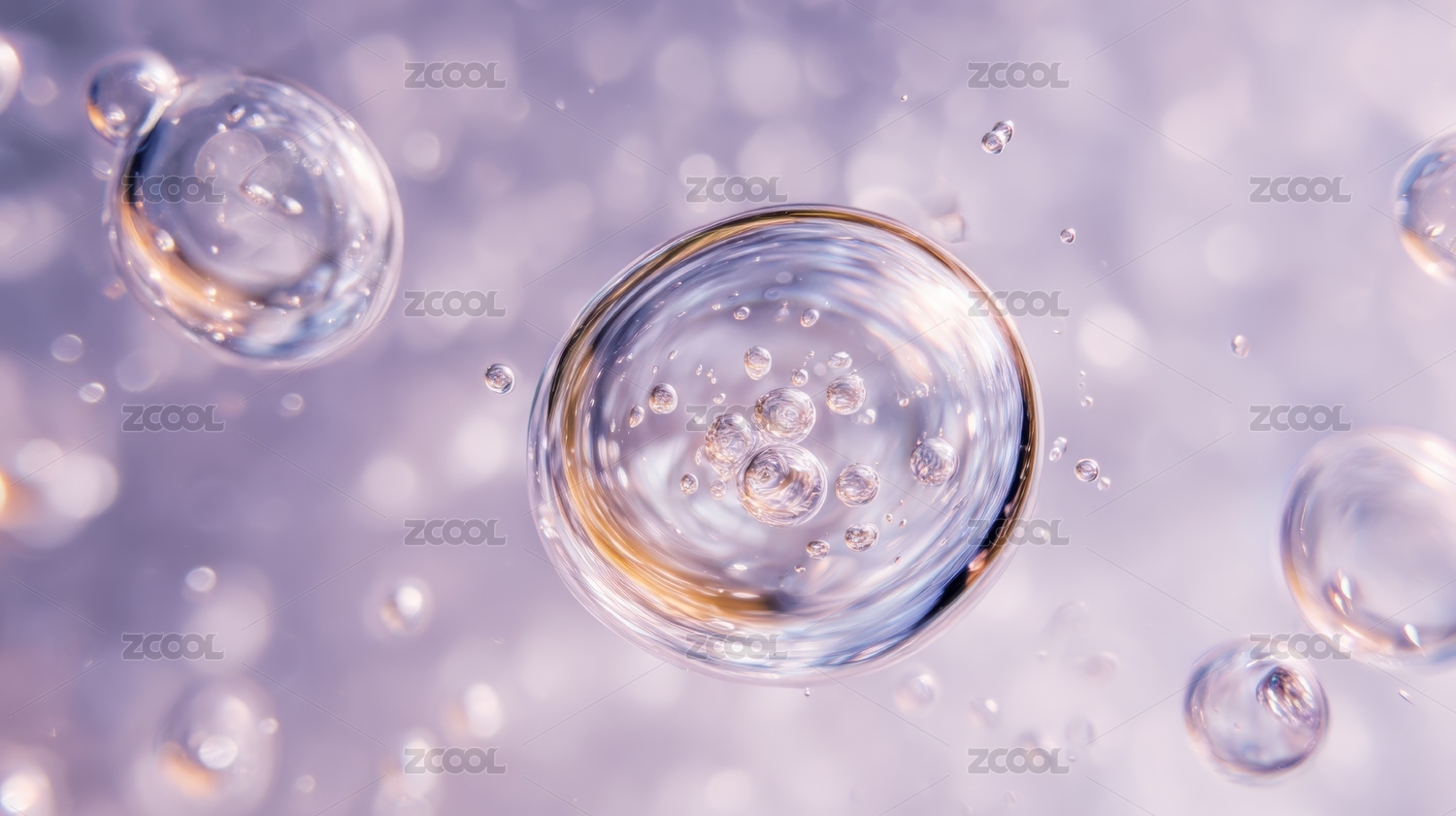 透明气泡悬浮在柔和背景中