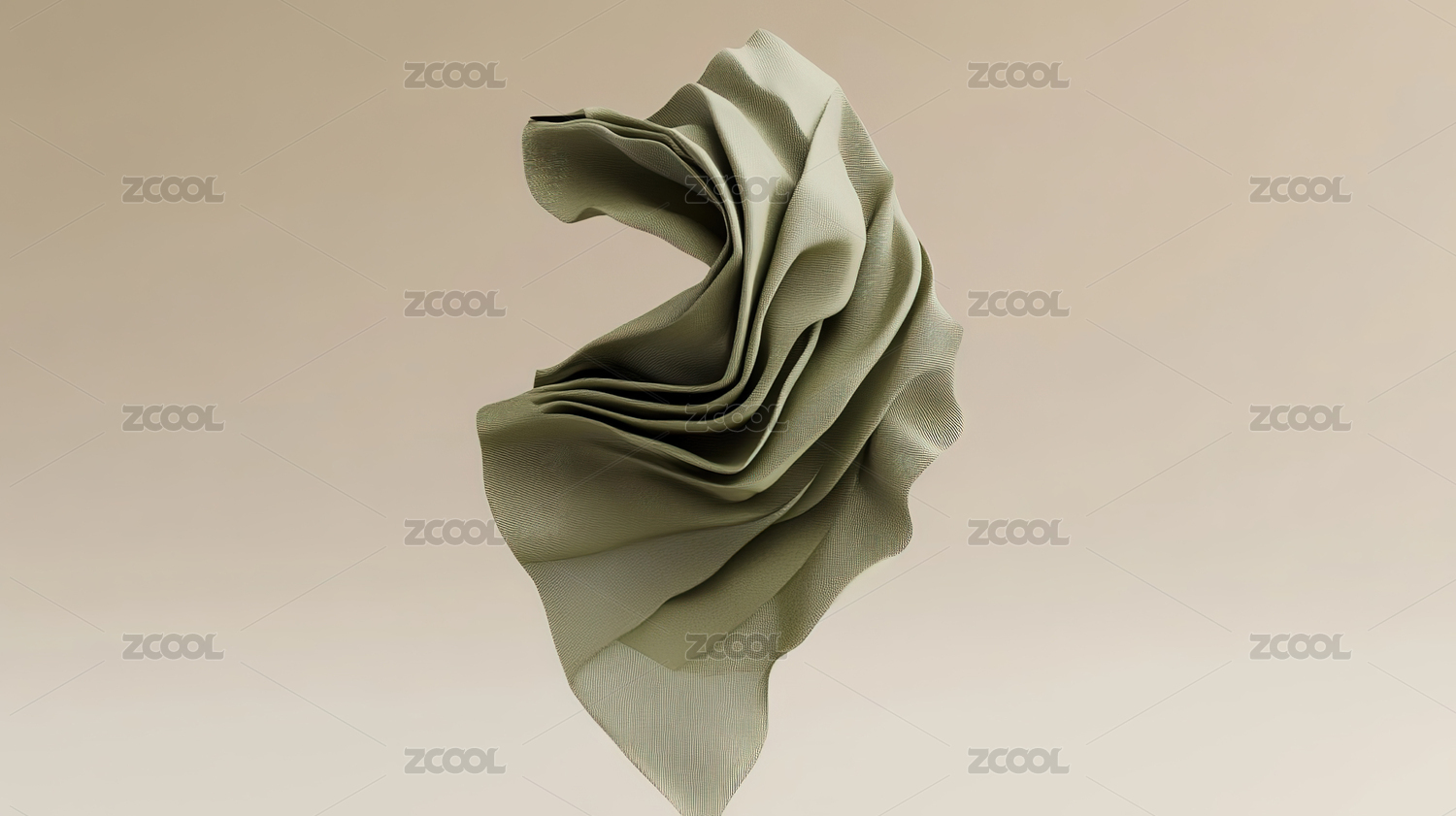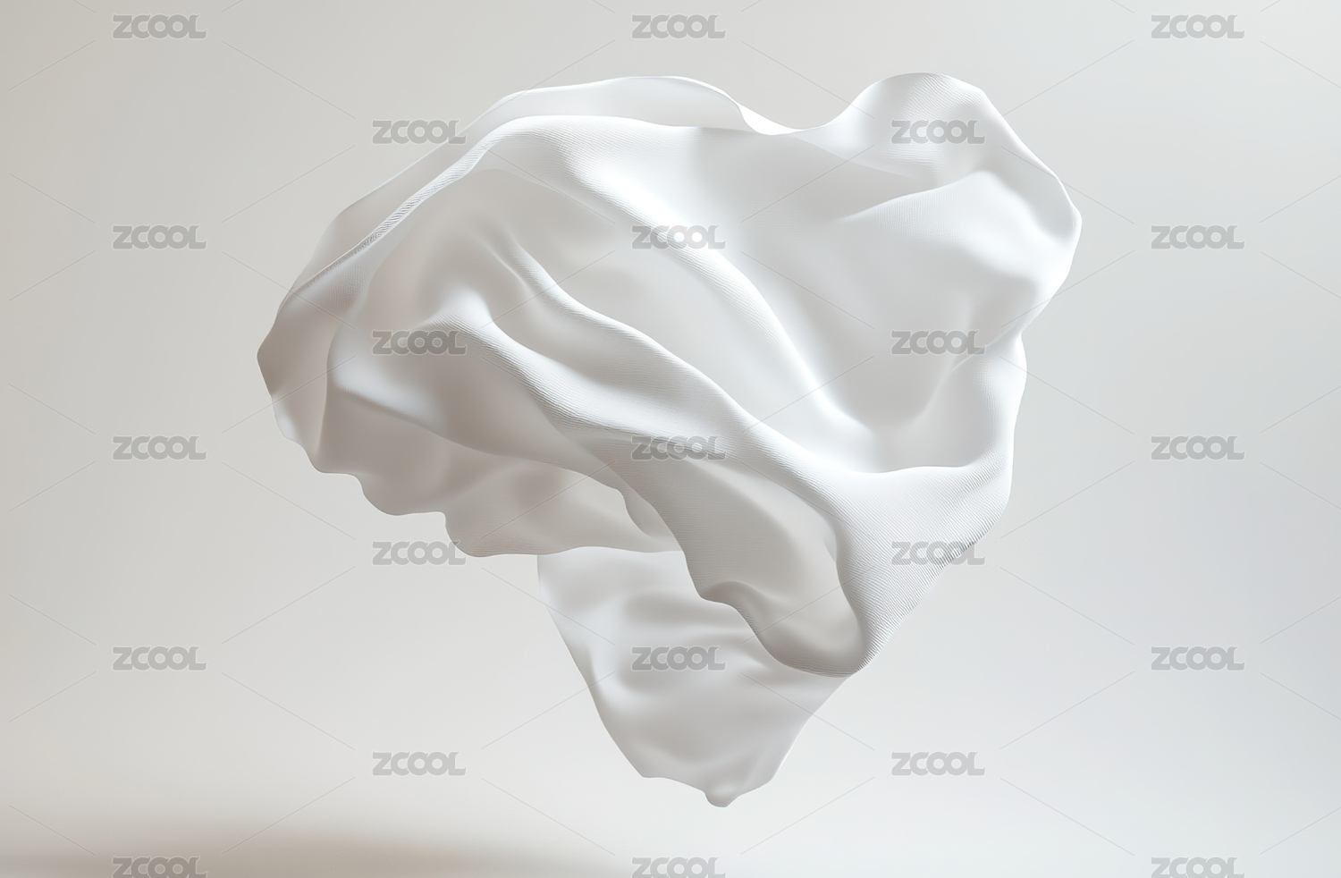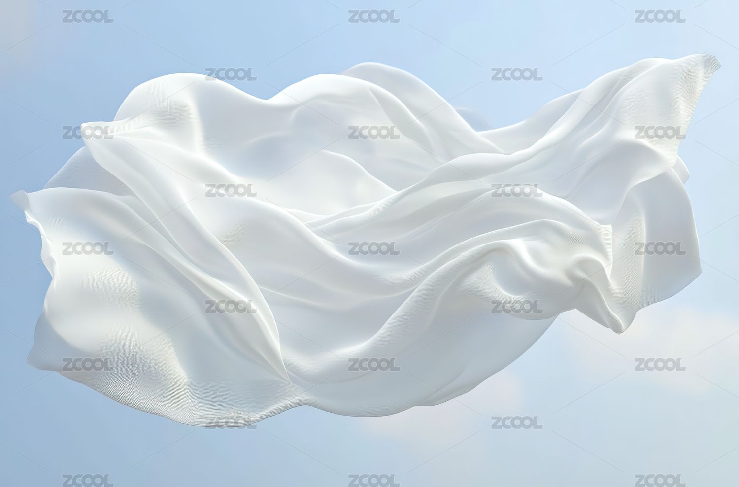 简洁背景中一张飞舞的白丝绸布