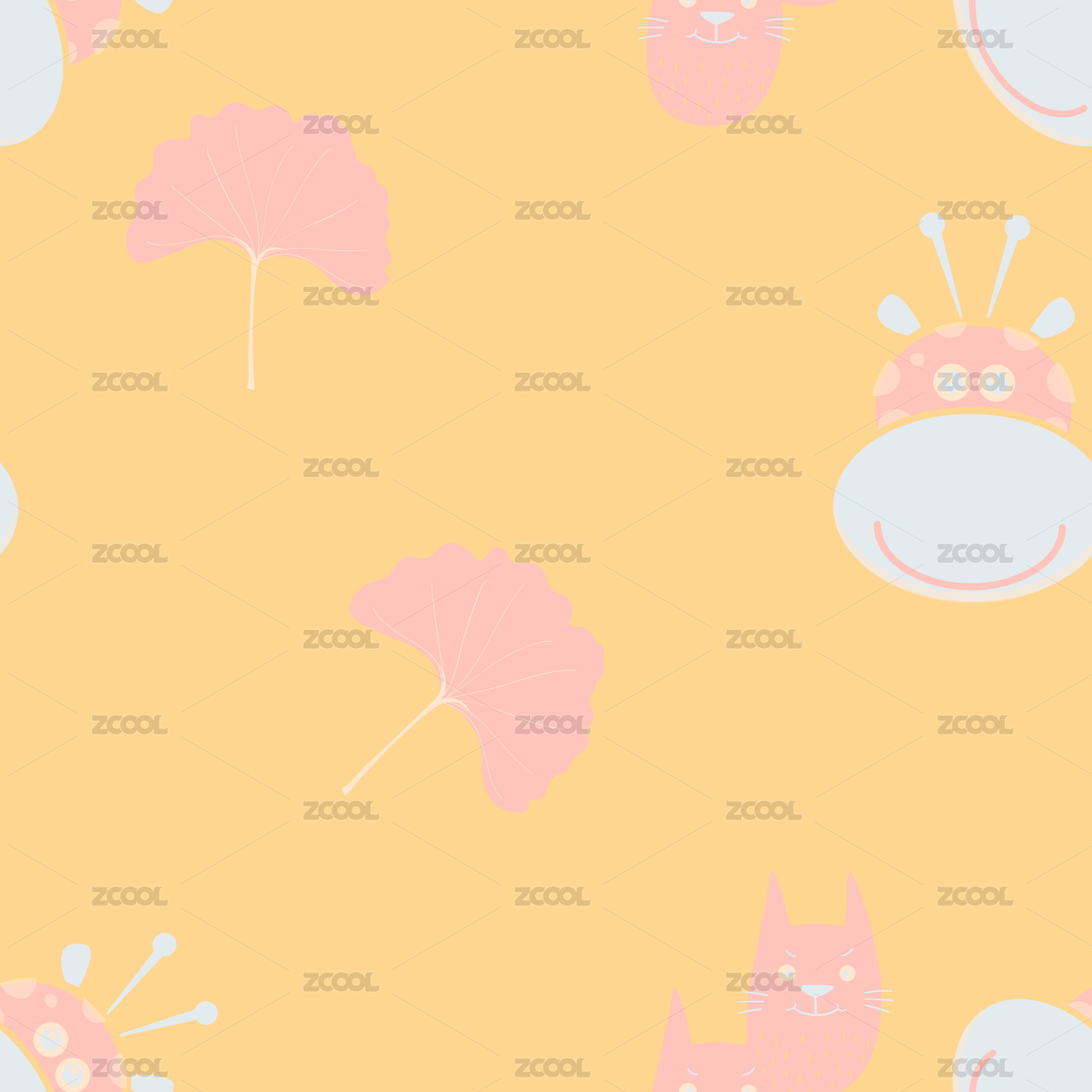 卡通猫咪图案 无缝拼接底纹