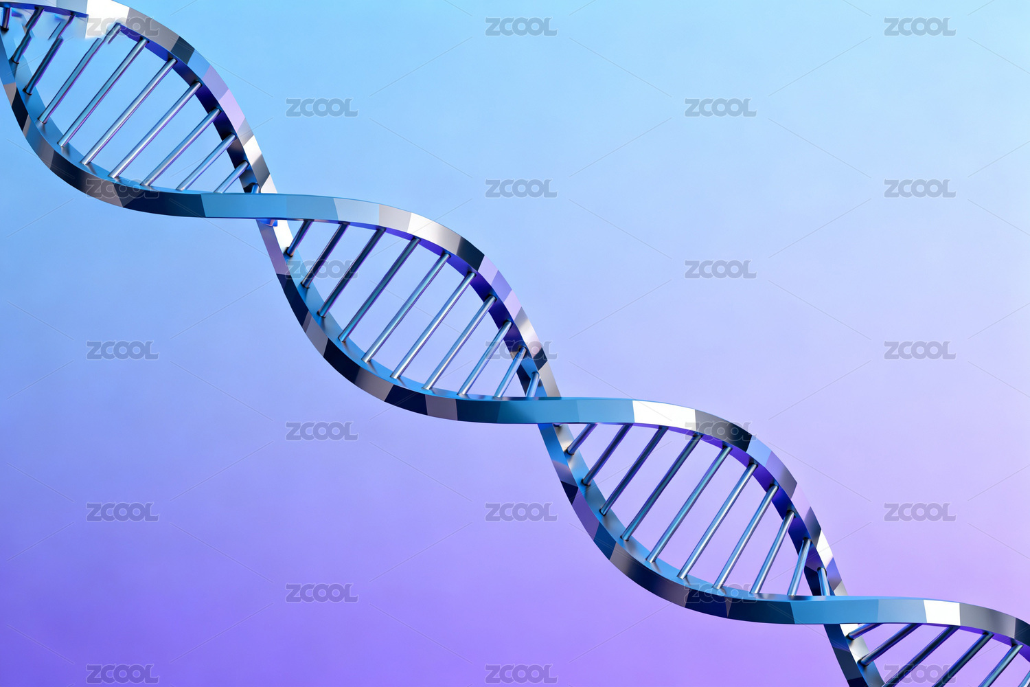 蓝色渐变背景下的DNA双螺旋结构
