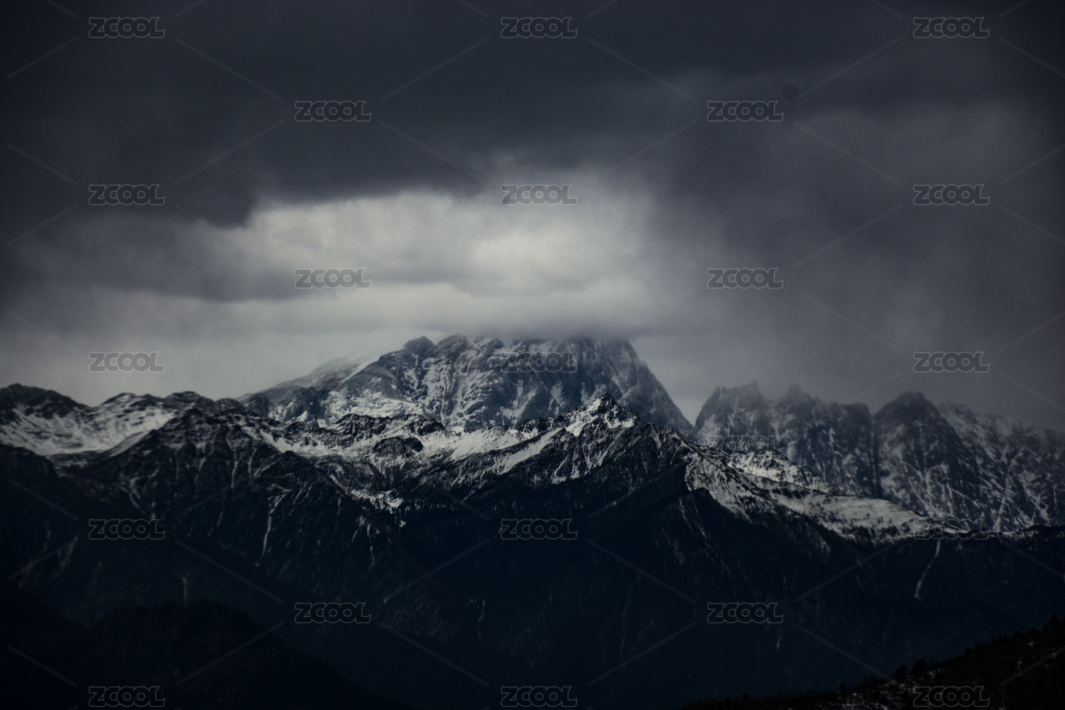 云雾中的中国梅里雪山群山