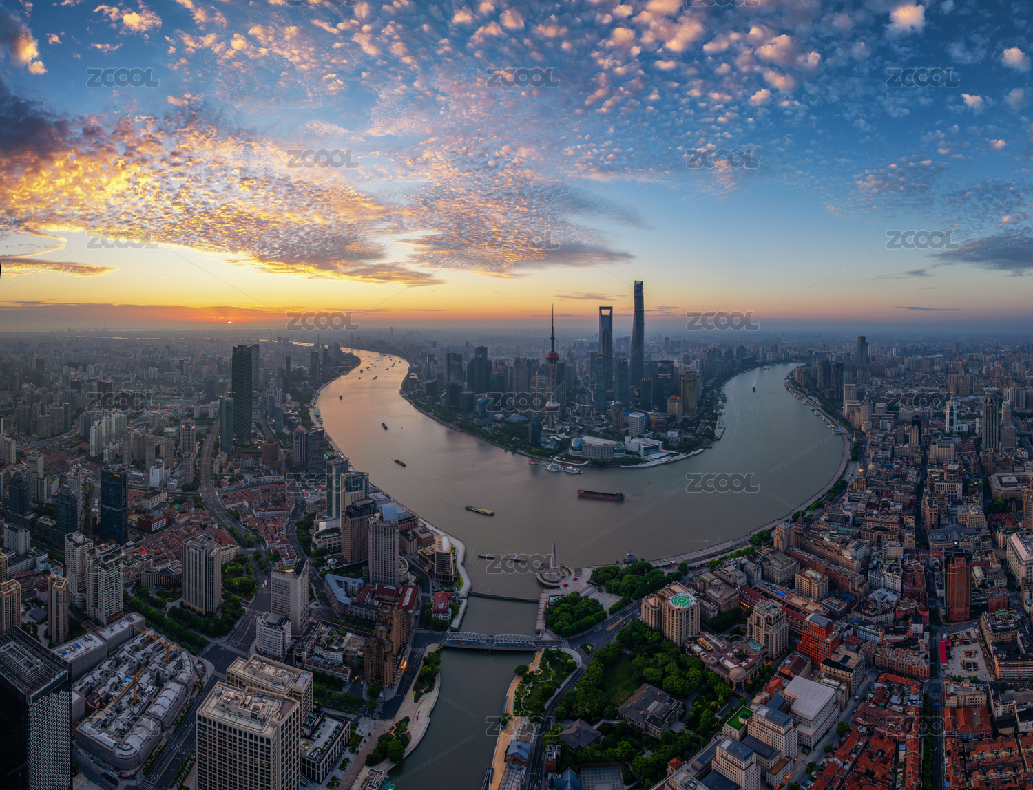 航拍高视角下的中国上海陆家嘴日出城市风光全景
