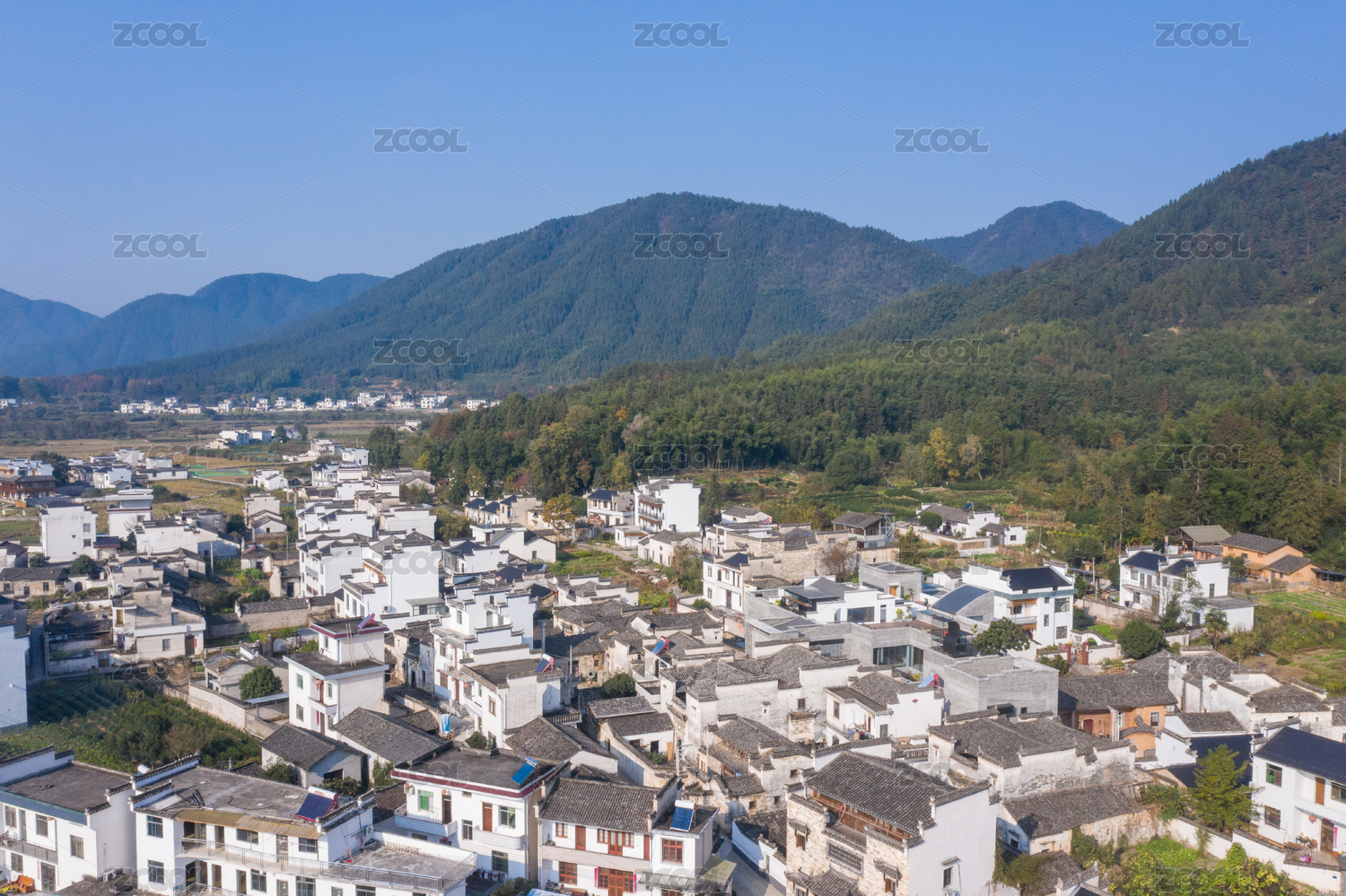航拍江西省婺源县皇岭古镇自然建筑风光