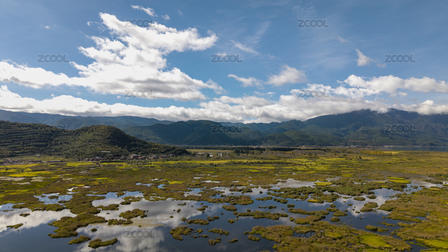 泸沽湖草海和摩梭族走婚桥白昼晴天航拍视角
