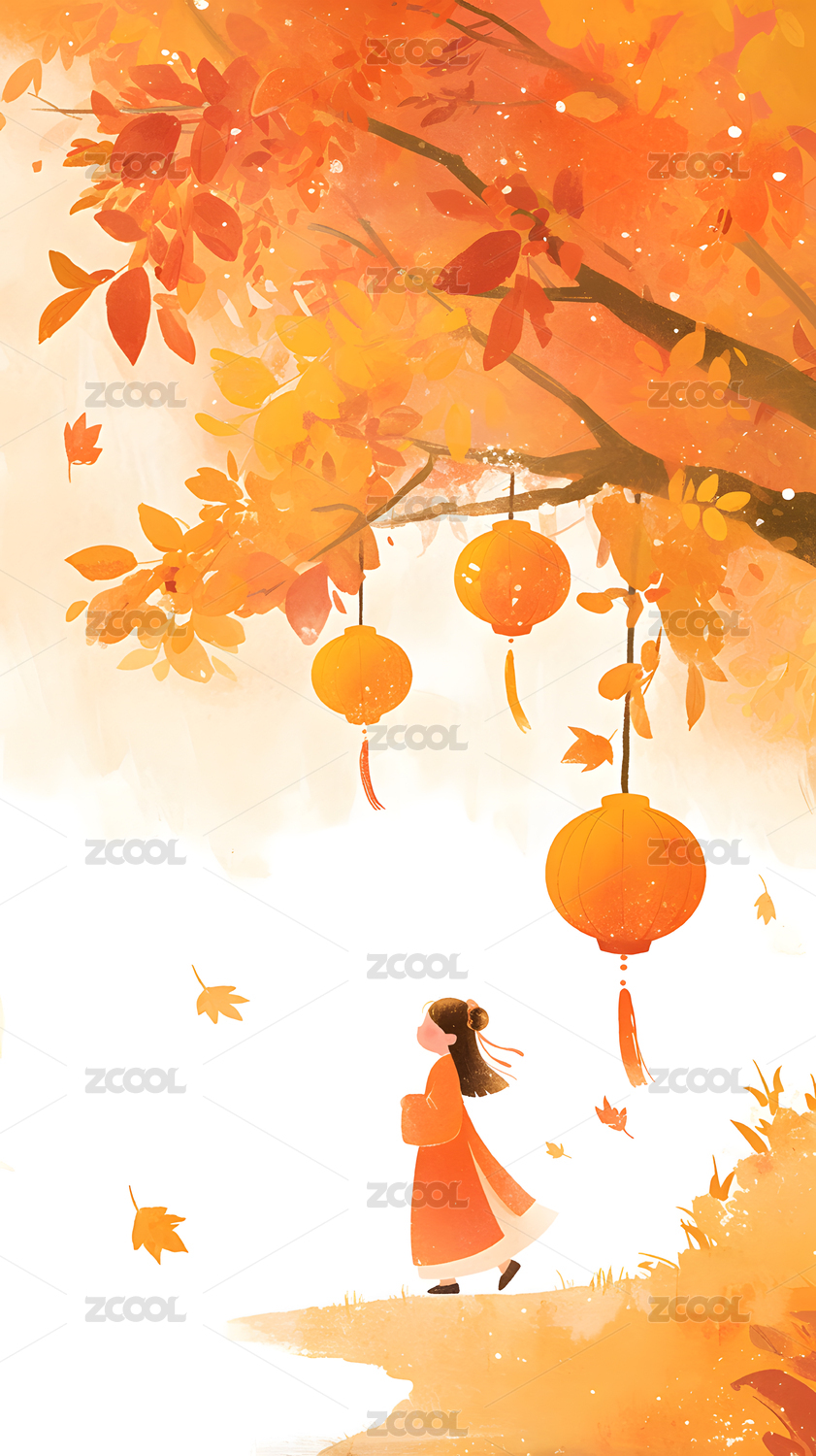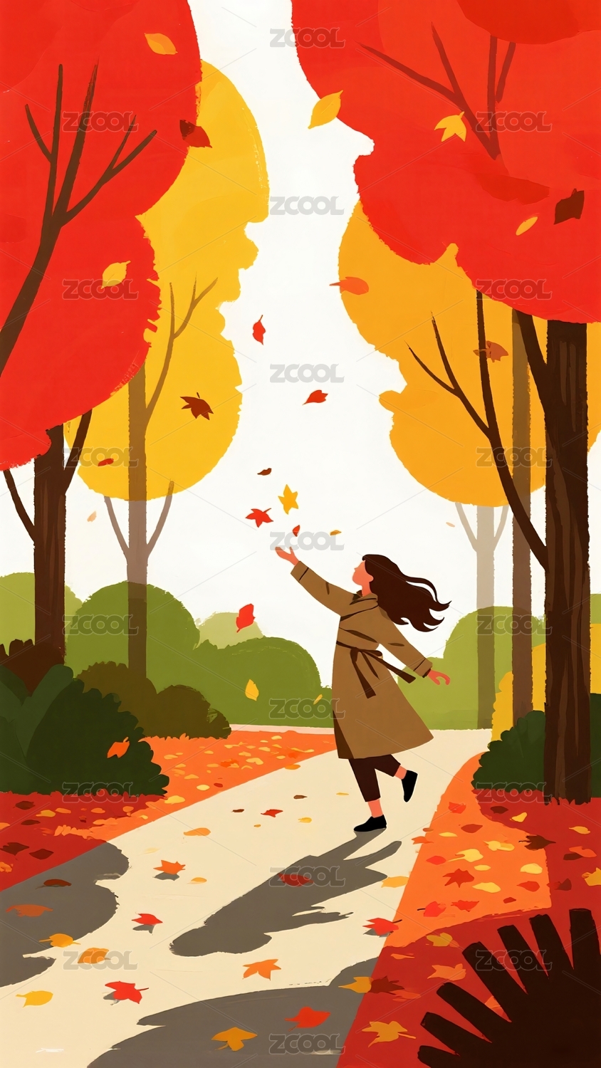 秋天,立秋,自然,AIGC202402,秋分,彩色,女孩,公园,围墙,落叶