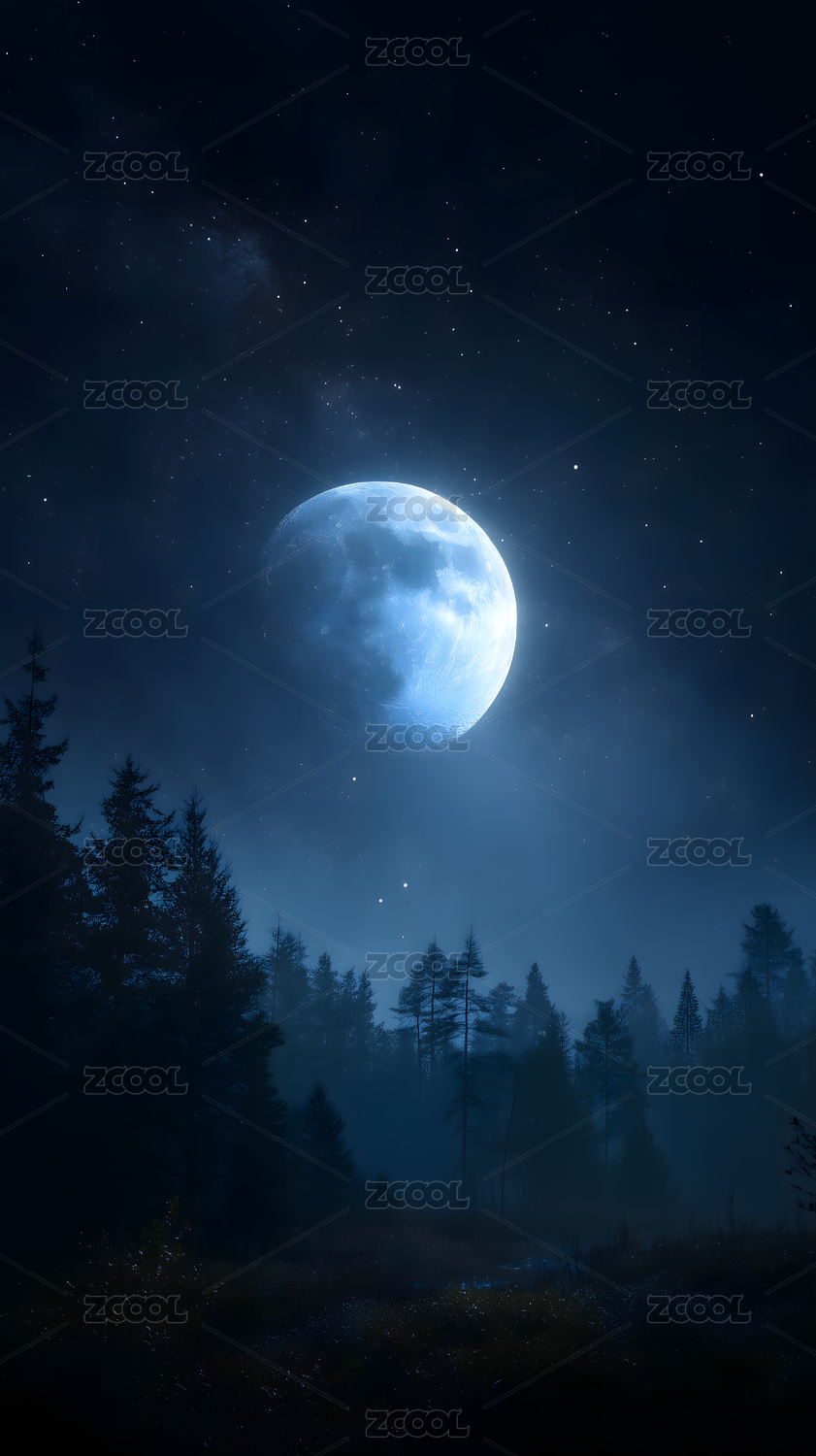 风景,自然,唯美,浪漫,月光,花海,蓝色,夜晚,星空,植物