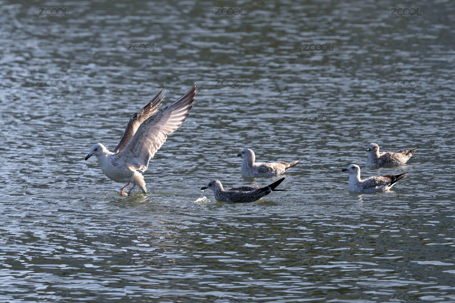 海鸥在海面上自由飞翔追逐觅食嬉戏特写