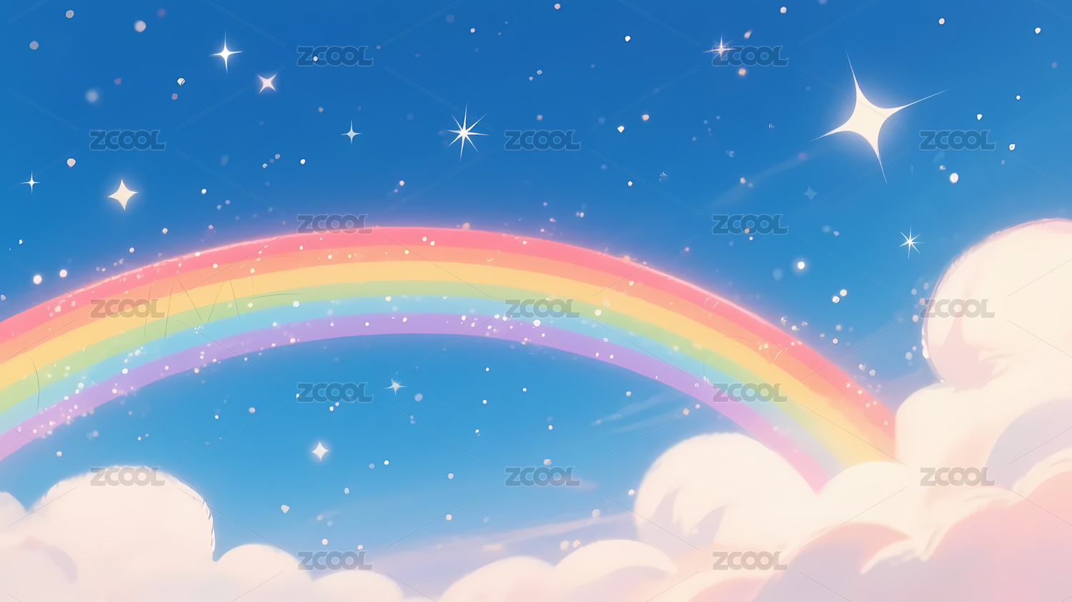 背景, 水彩, 梦幻, 浪漫, 唯美,彩虹, 星星, 星云, 云朵, 星系