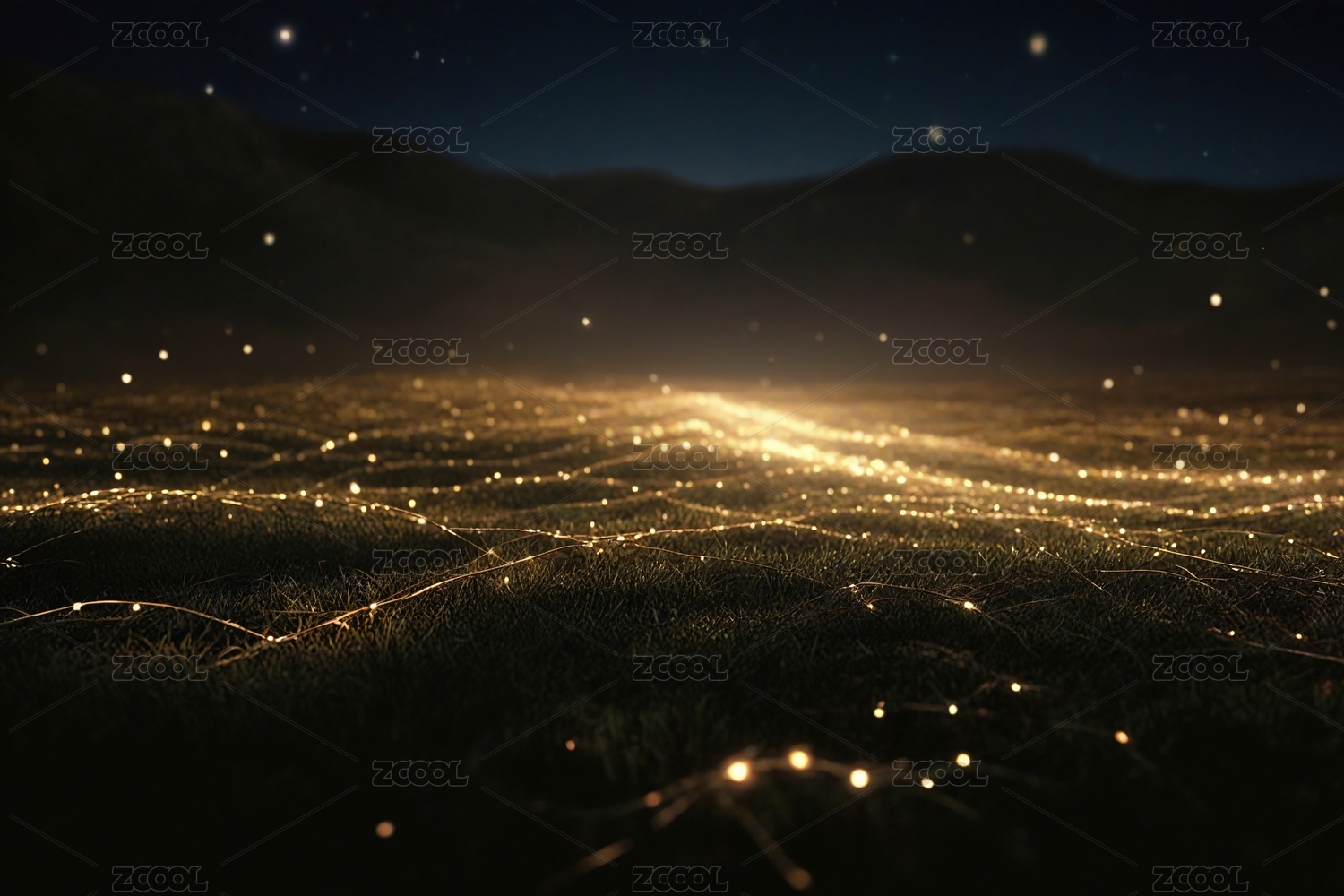 夜晚草地上的梦幻光点