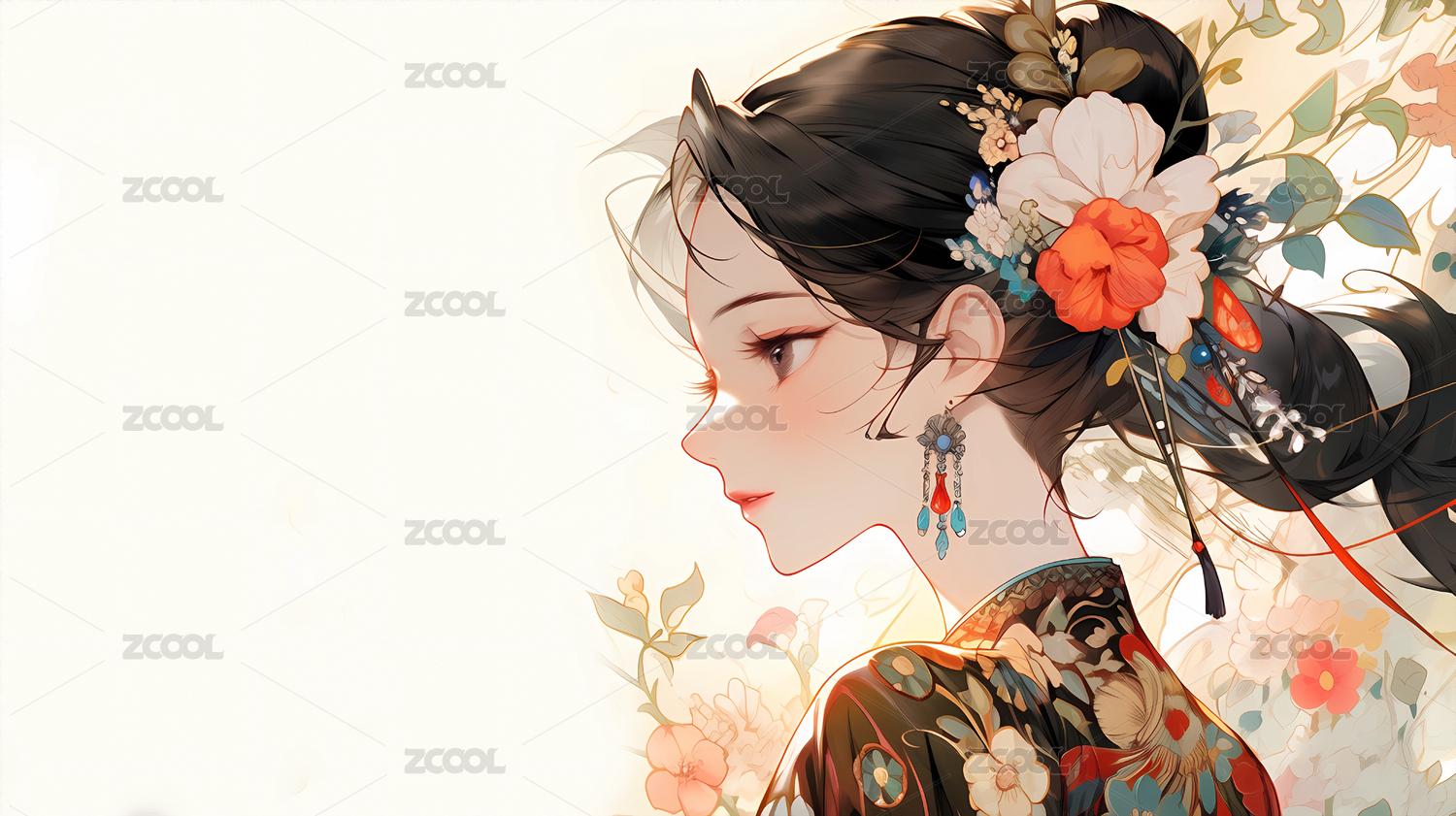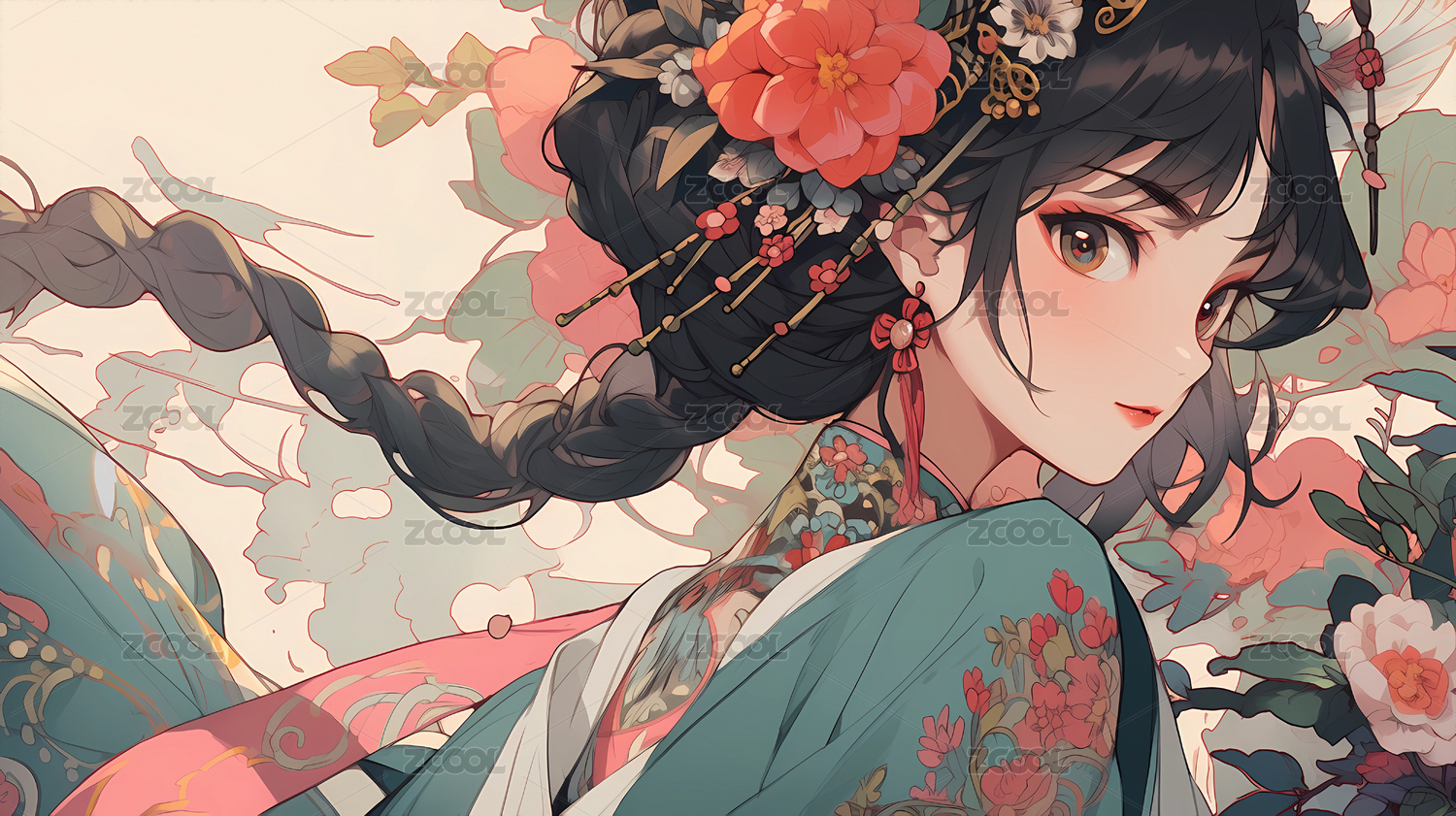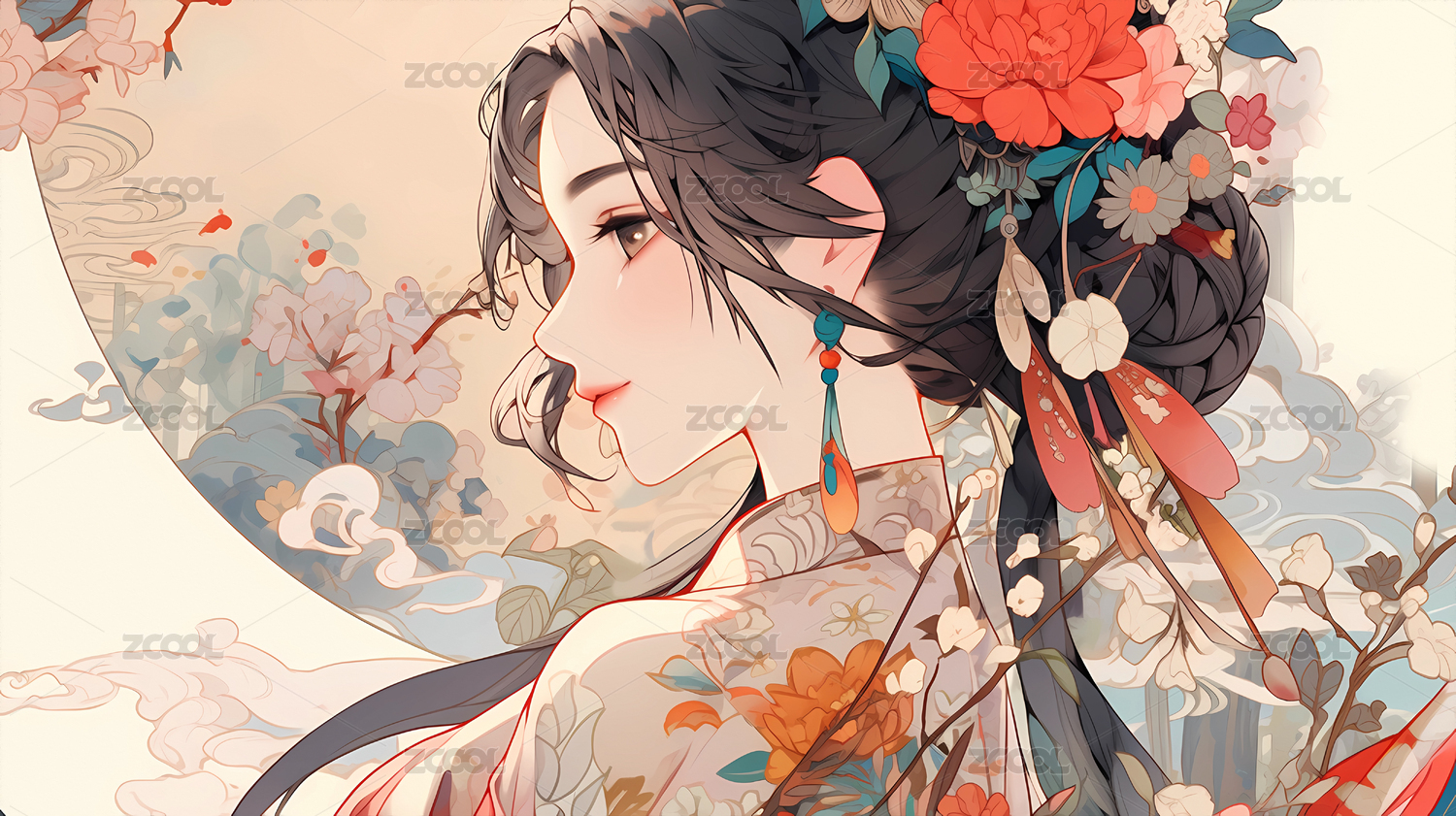 手绘卡通动漫唯美可爱的中国古风古装女孩插