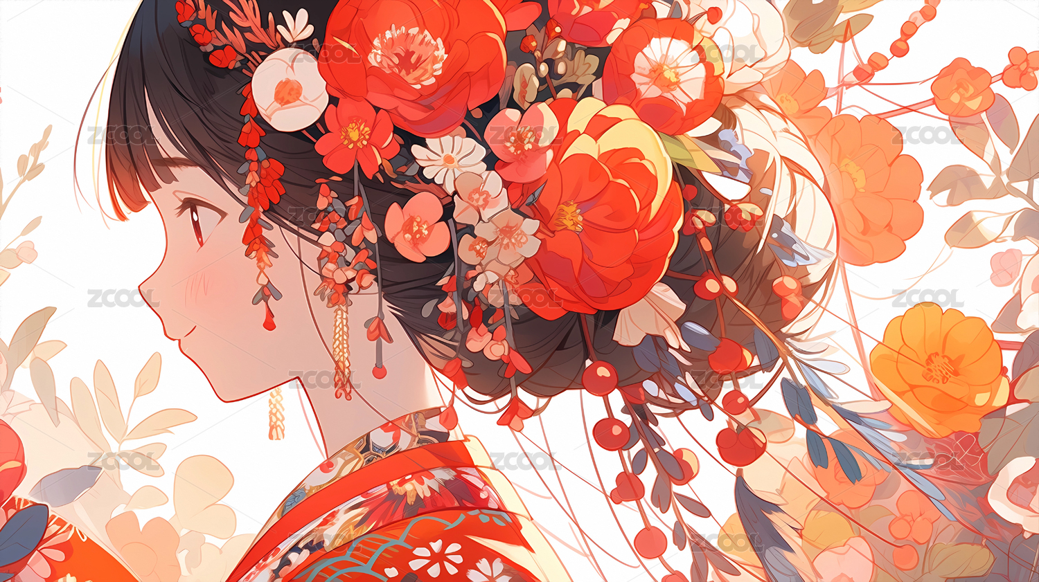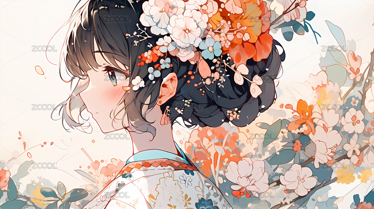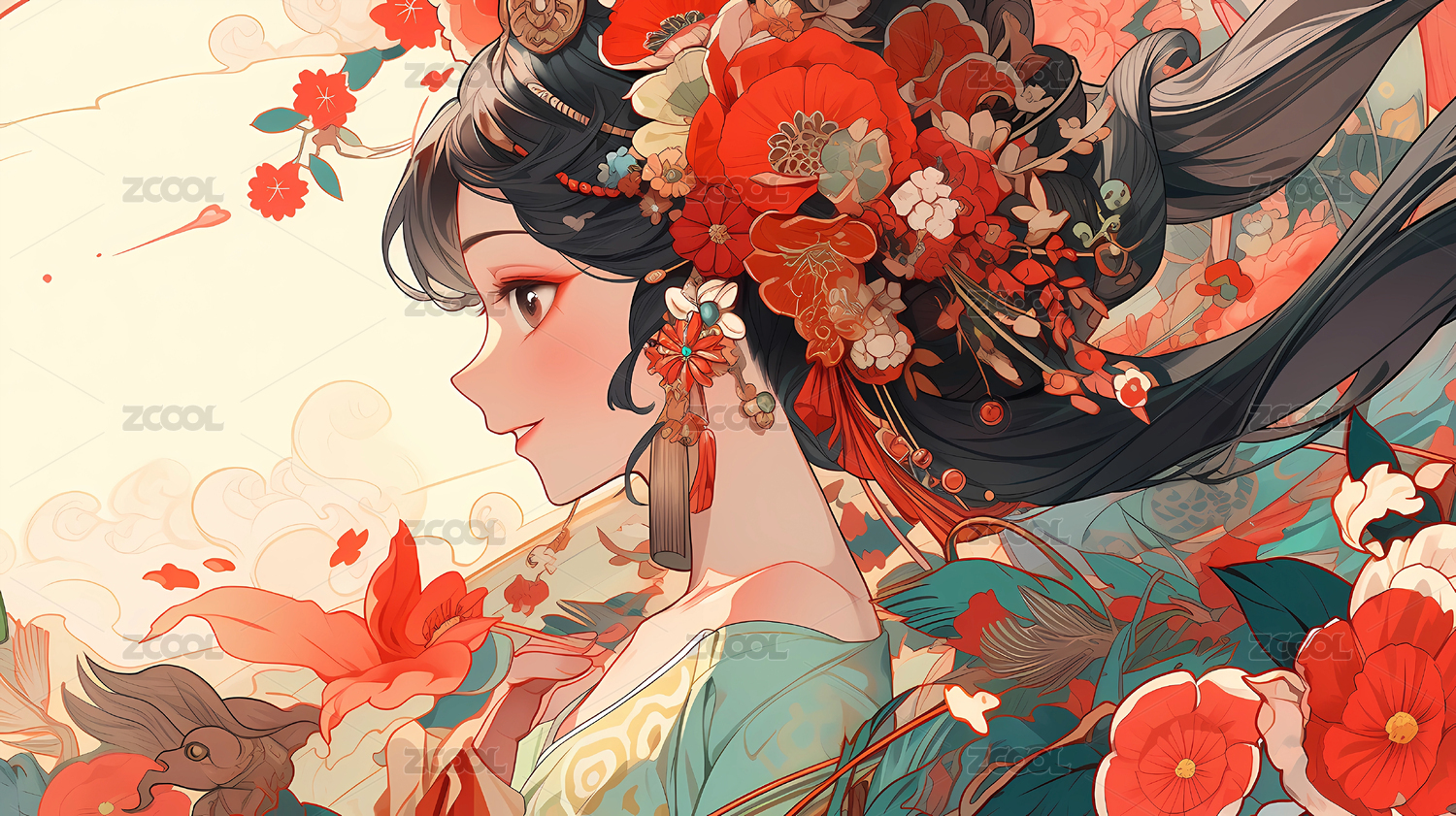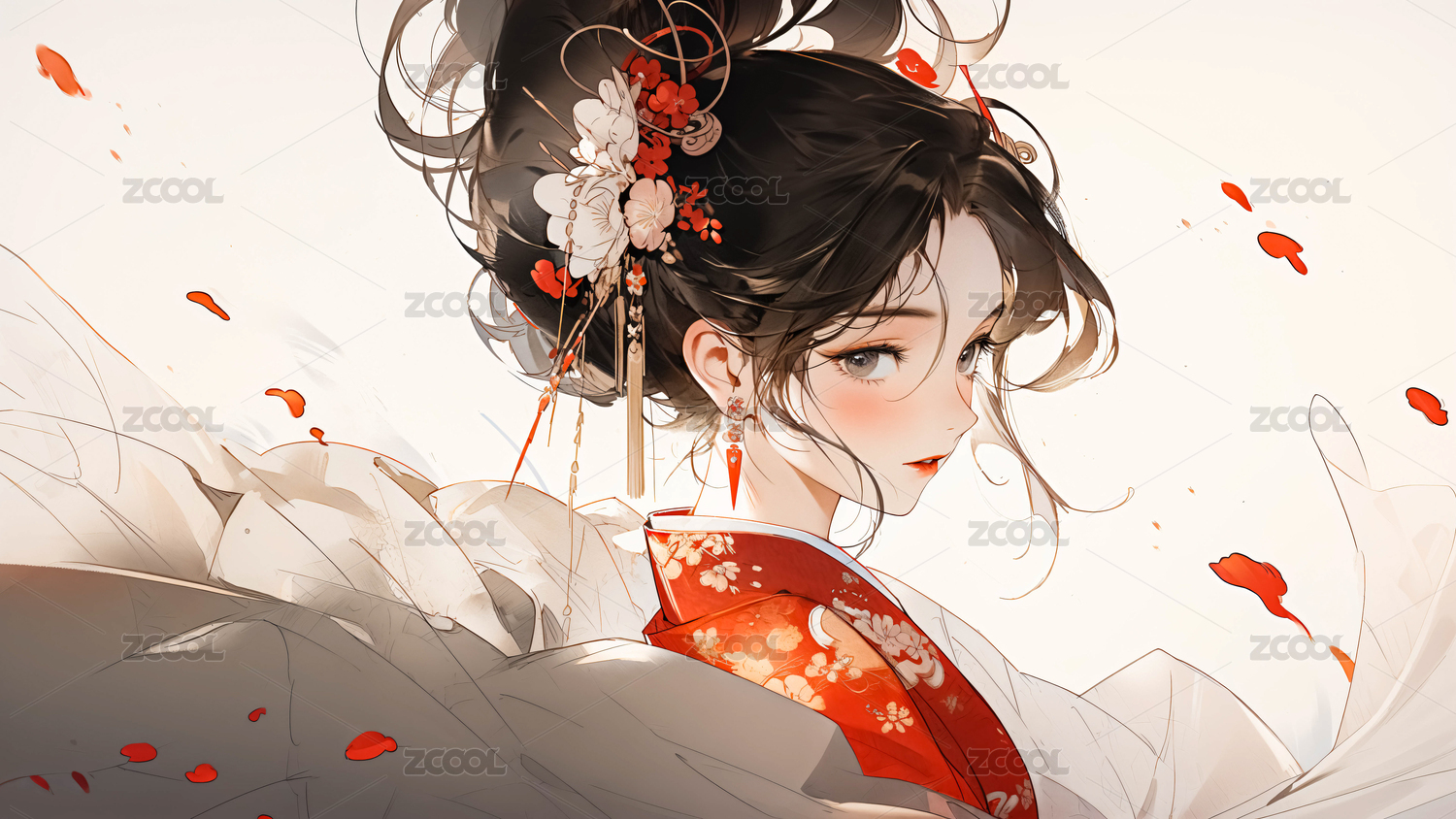 手绘卡通动漫唯美可爱的中国古风古装女孩插