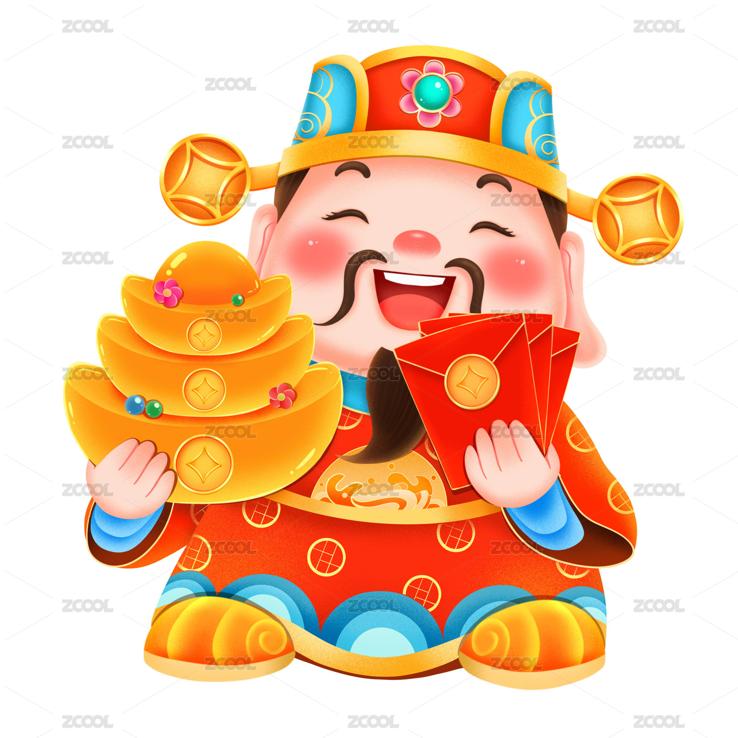 国潮,新年,春节,拜年,贴纸,插画,年画,喜庆,卡通,中国