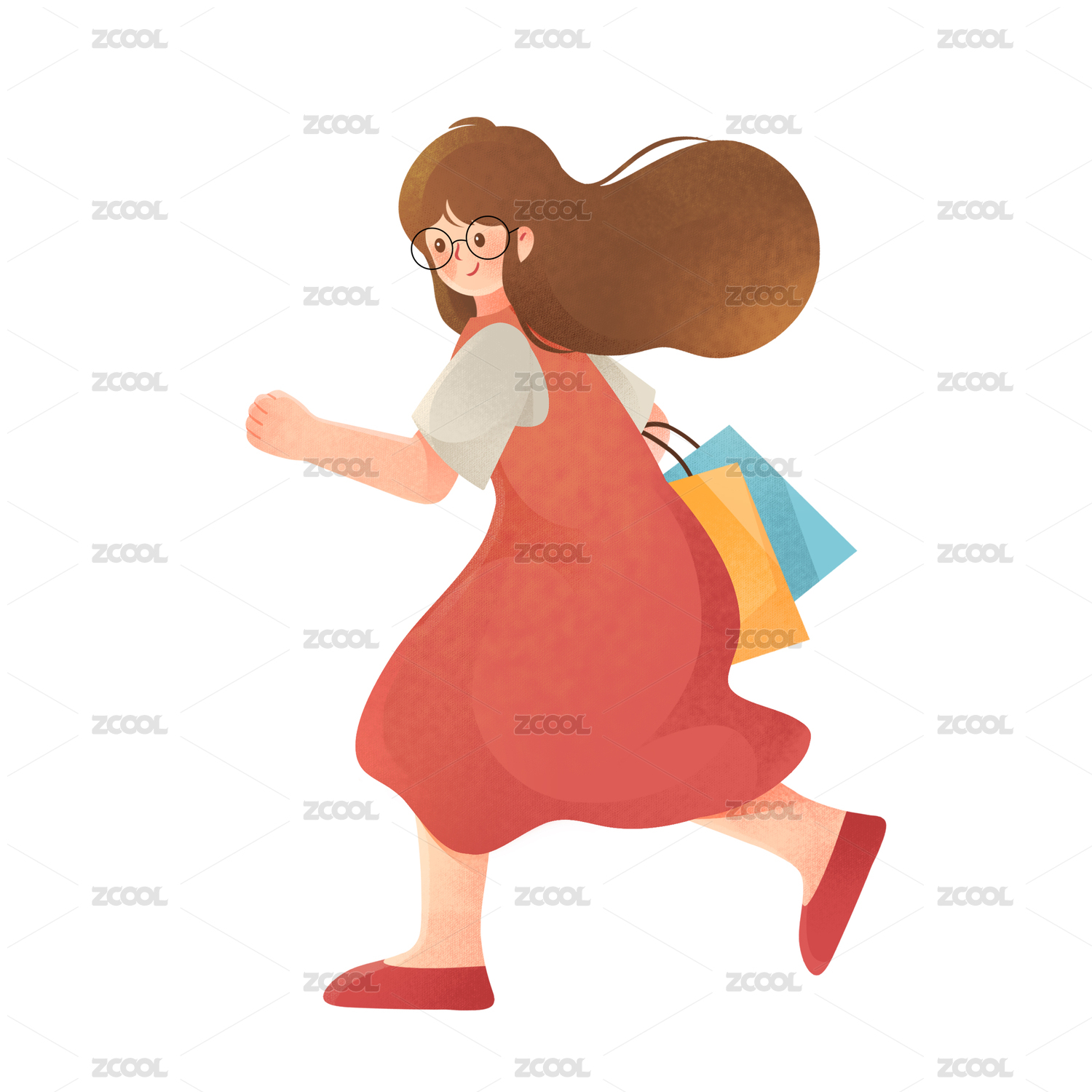 购物,逛街,女生,卡通,插画,购物节,购物狂欢节,购物袋,绘本,购买