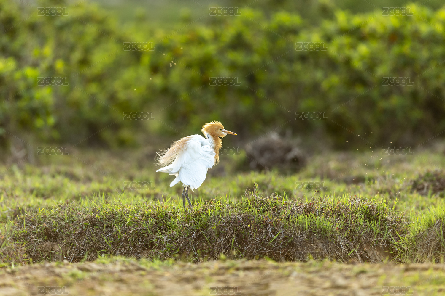 跟在牛后啄食昆虫等小动物的牛背鹭鸟