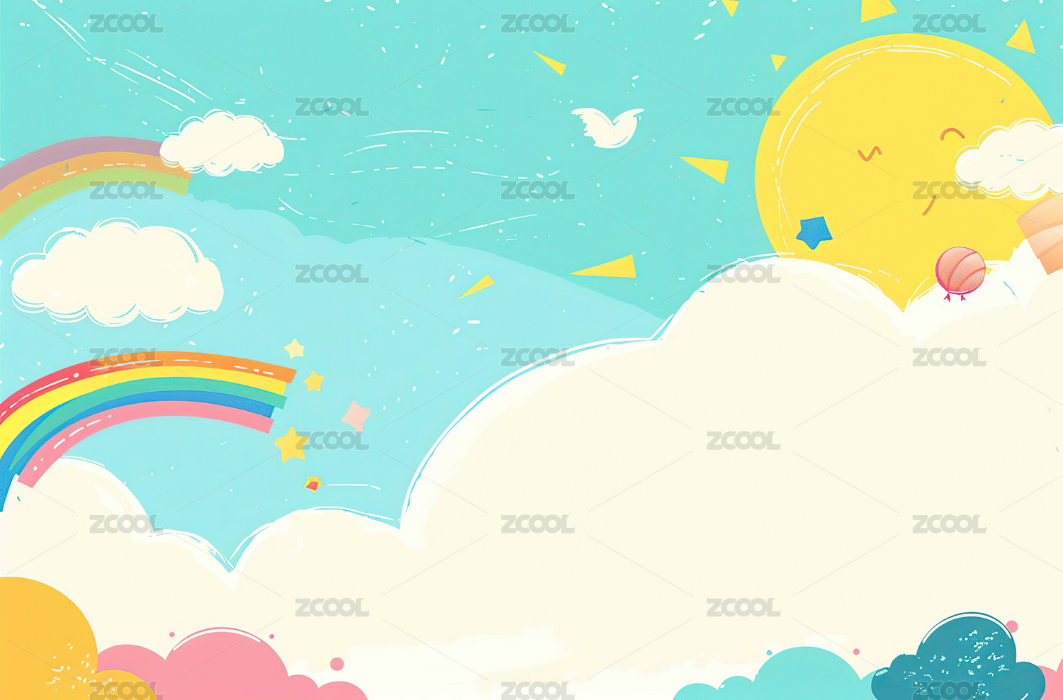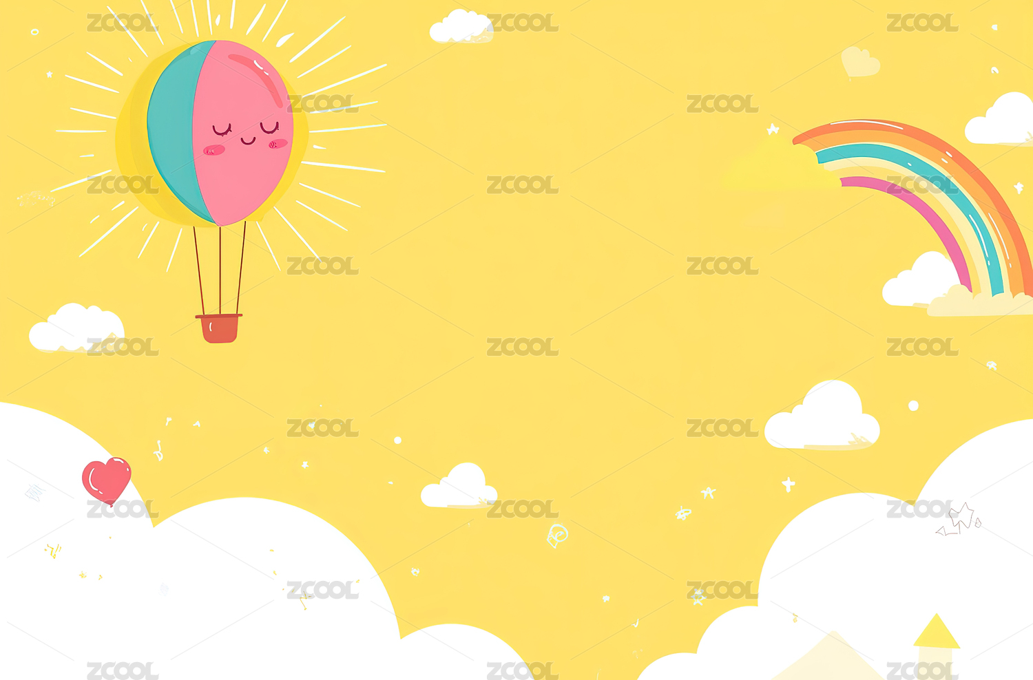 61六一儿童节小孩热气球彩虹蓝天展板背景
