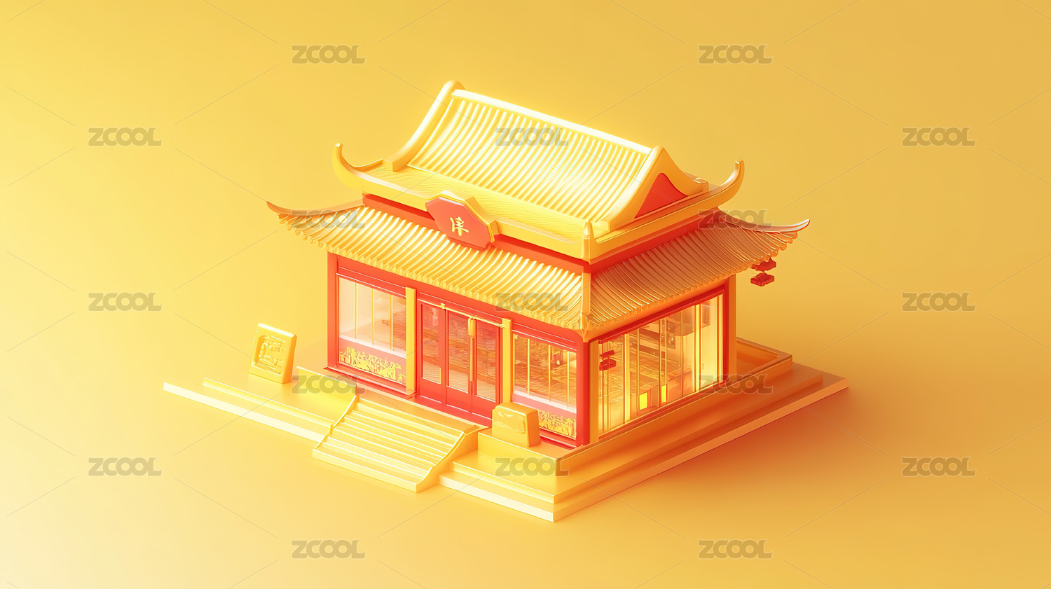 中国风,红色,亭子,灯笼,中式,建筑,节日,喜庆,3D,渲染