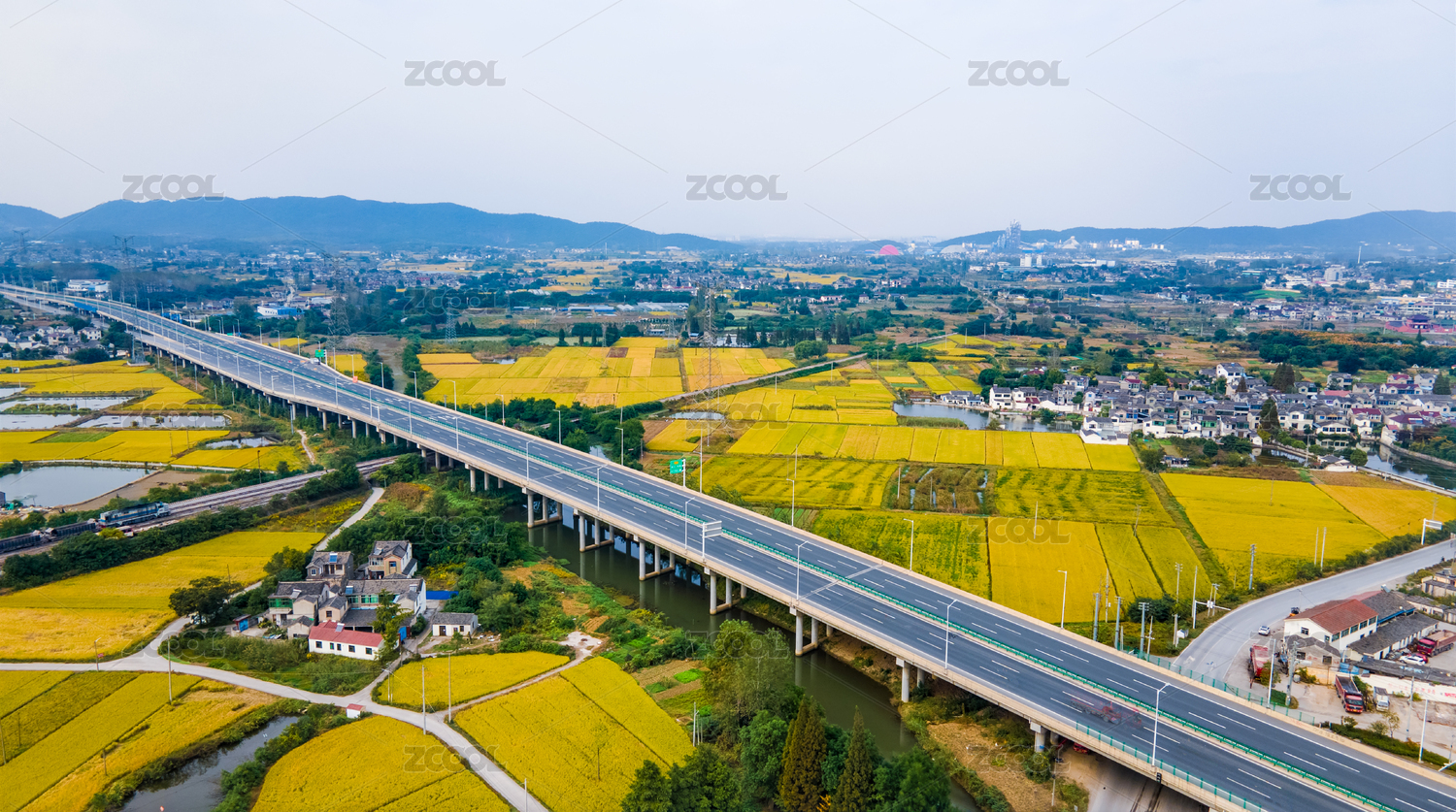 航拍穿过安徽郎溪凌笪乡金色田野的扬绩高速