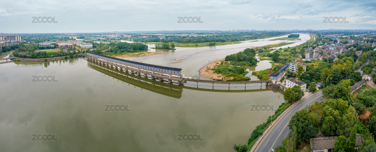 航拍中国四川通济堰世界灌溉工程遗产全景