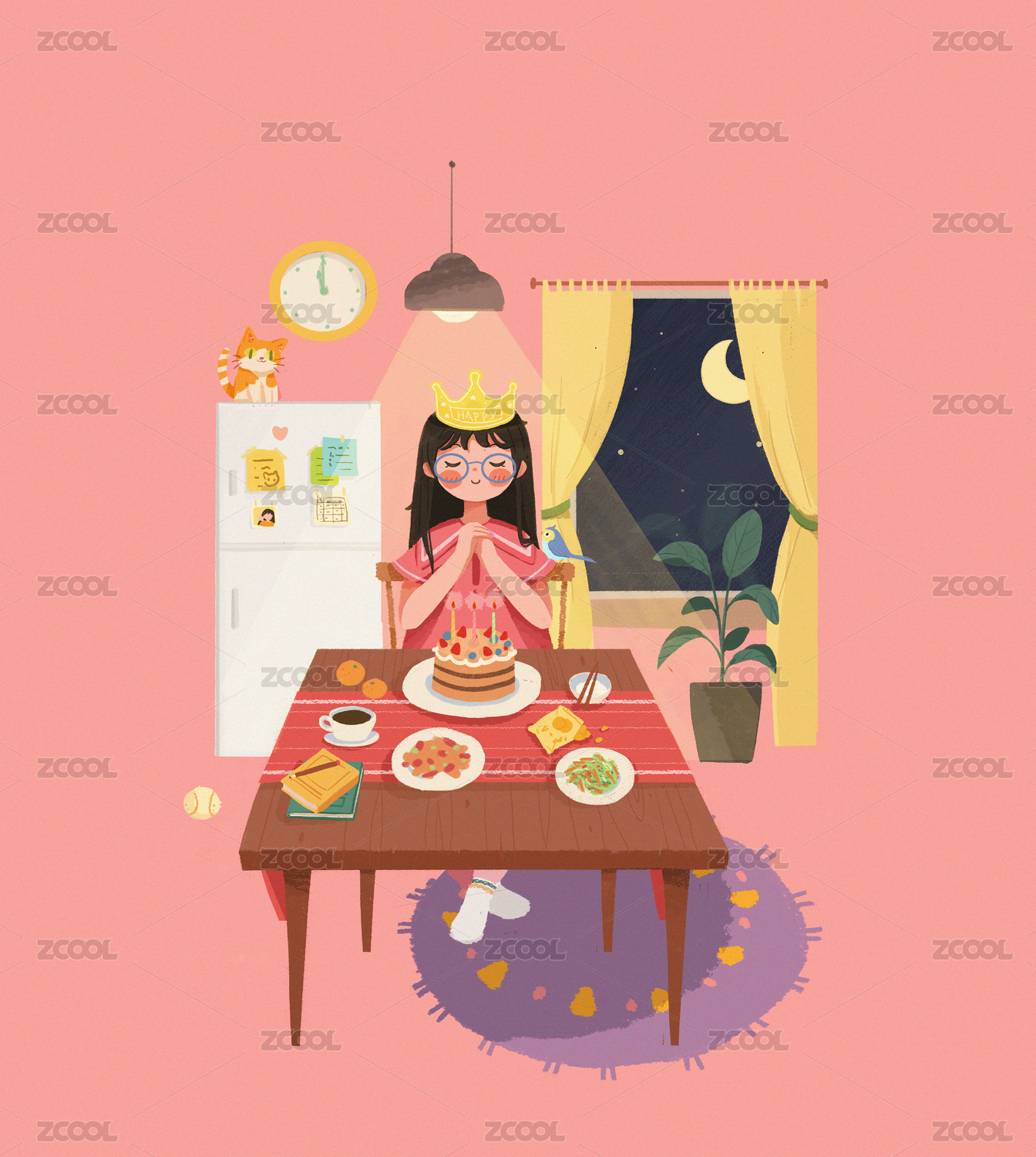 插画家居场景系列--在家的时光