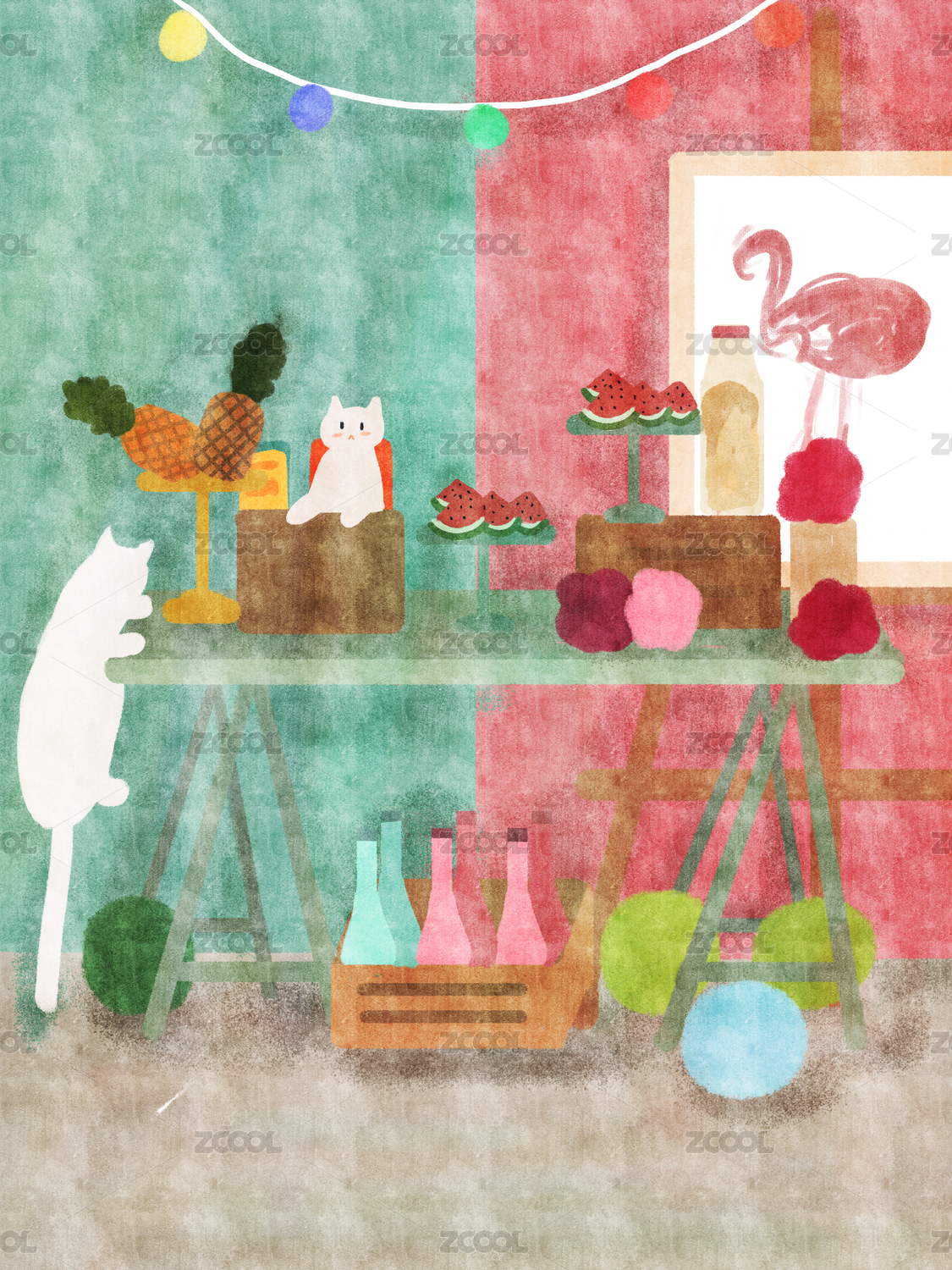 水彩风家居小场景