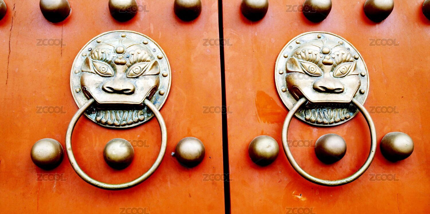 建筑,古代建筑,红漆门,大门,门环,狮子头,黄铜,锁,门钉,古代