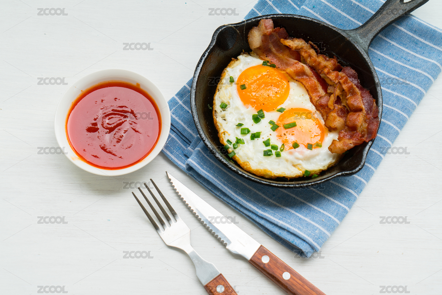 营养健康又美味的煎蛋和牛奶燕麦粥早餐