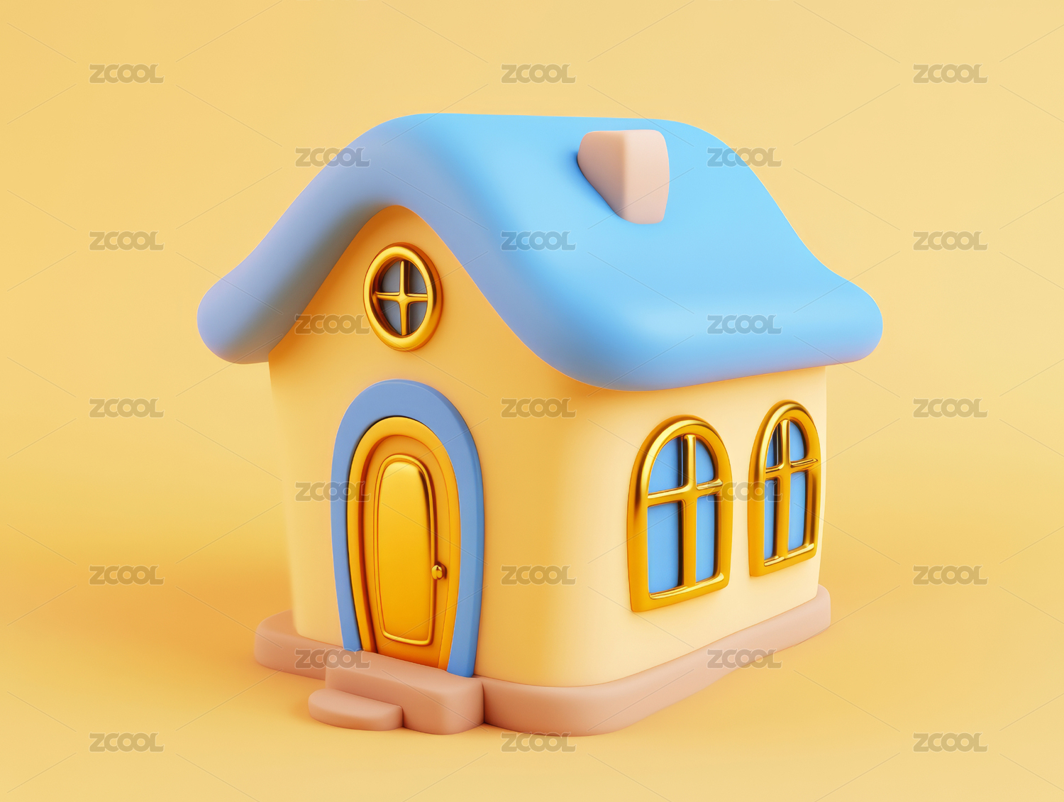卡通,3D,C4D,海报,壁纸,可爱,立体,房屋,房子,房产