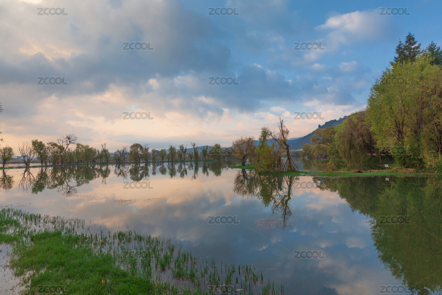 中国,云南,鹤庆,黄龙潭,清晨,朝霞,高山,地形,环境,水