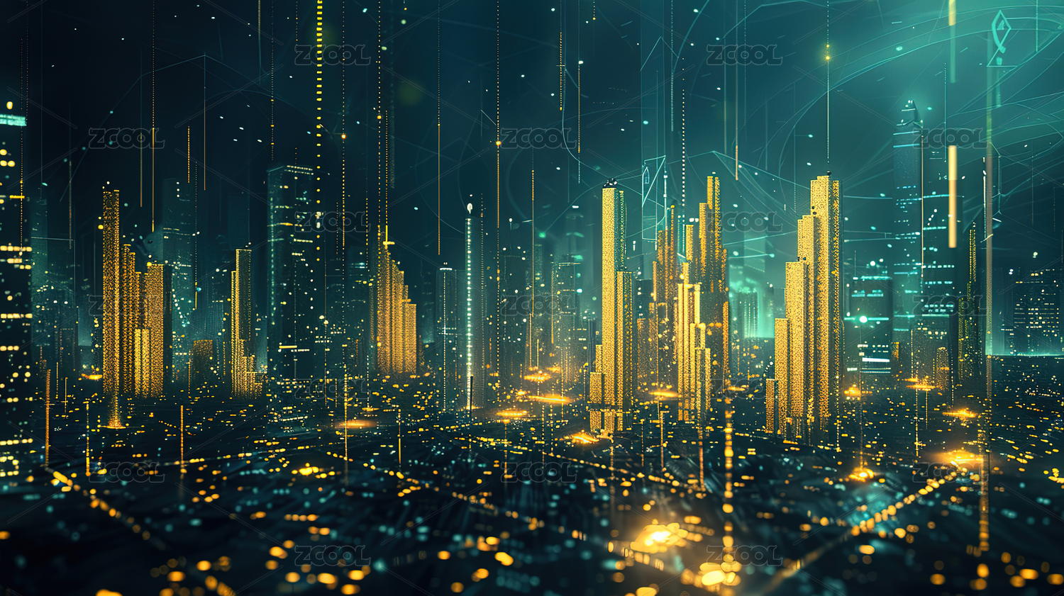 抽象金色发光粒子线条明亮纹理商务壁纸背景