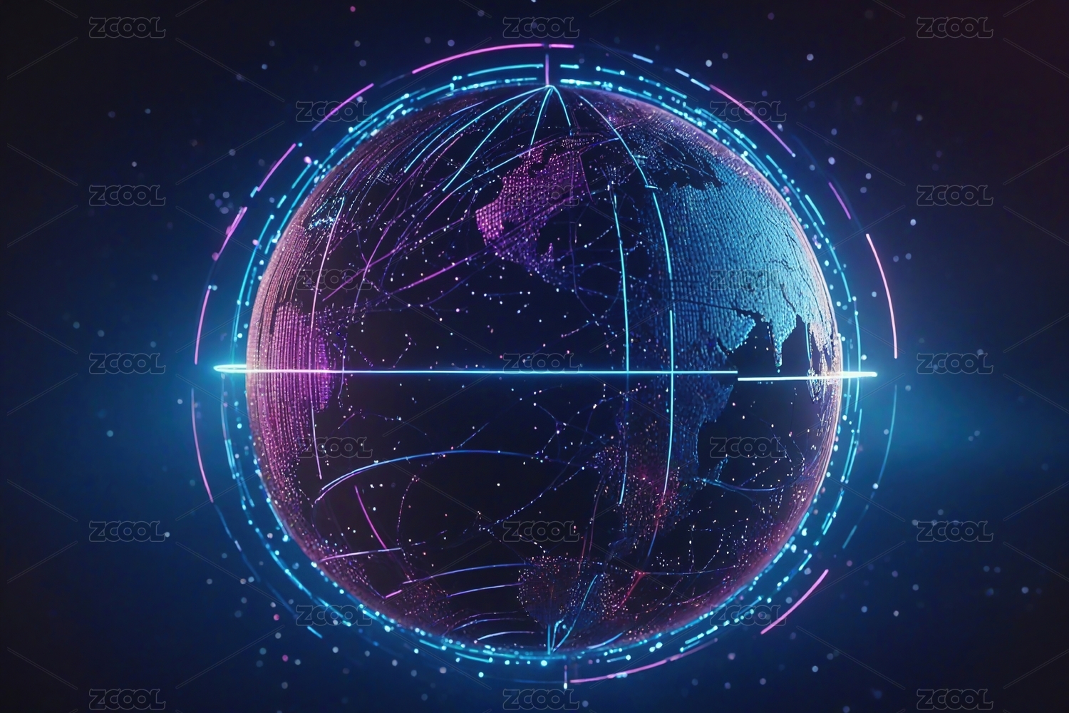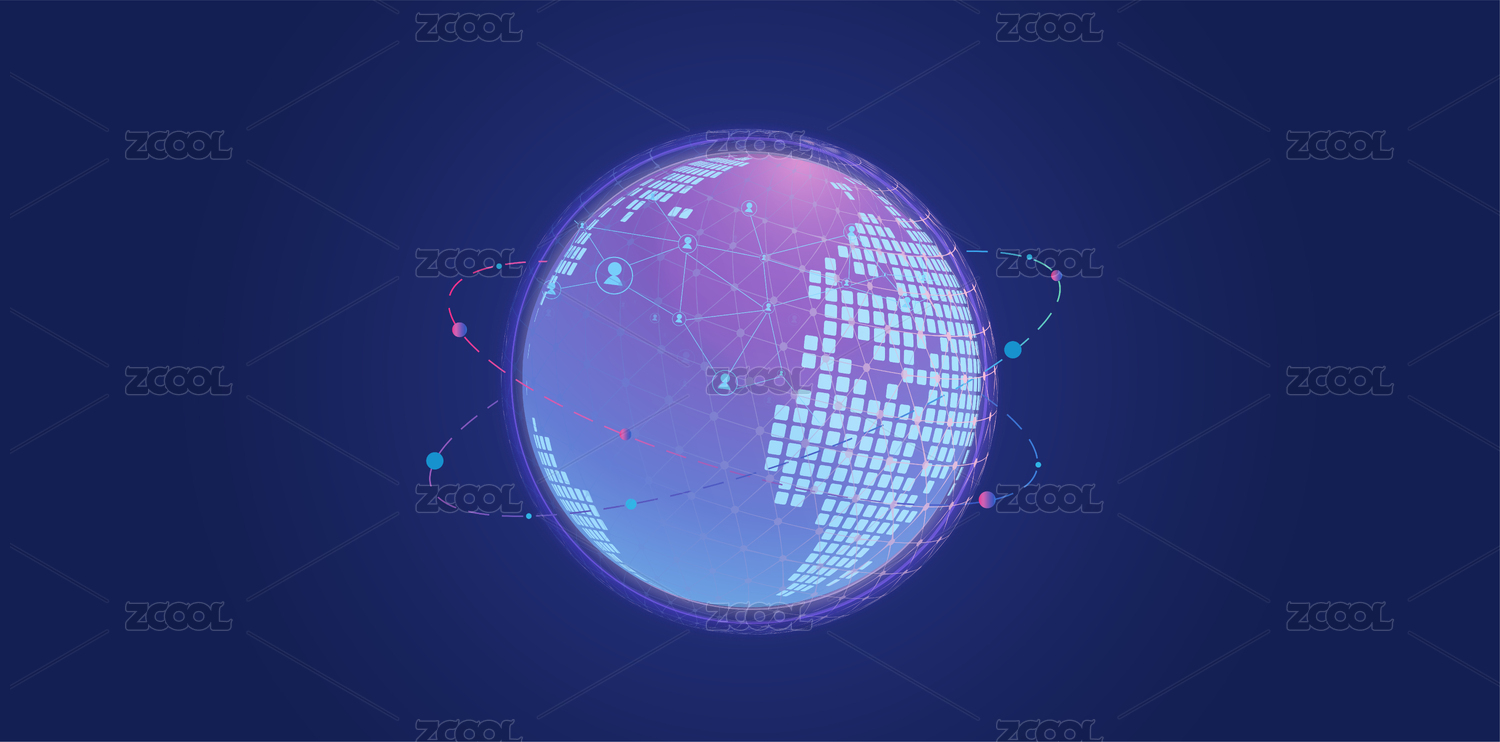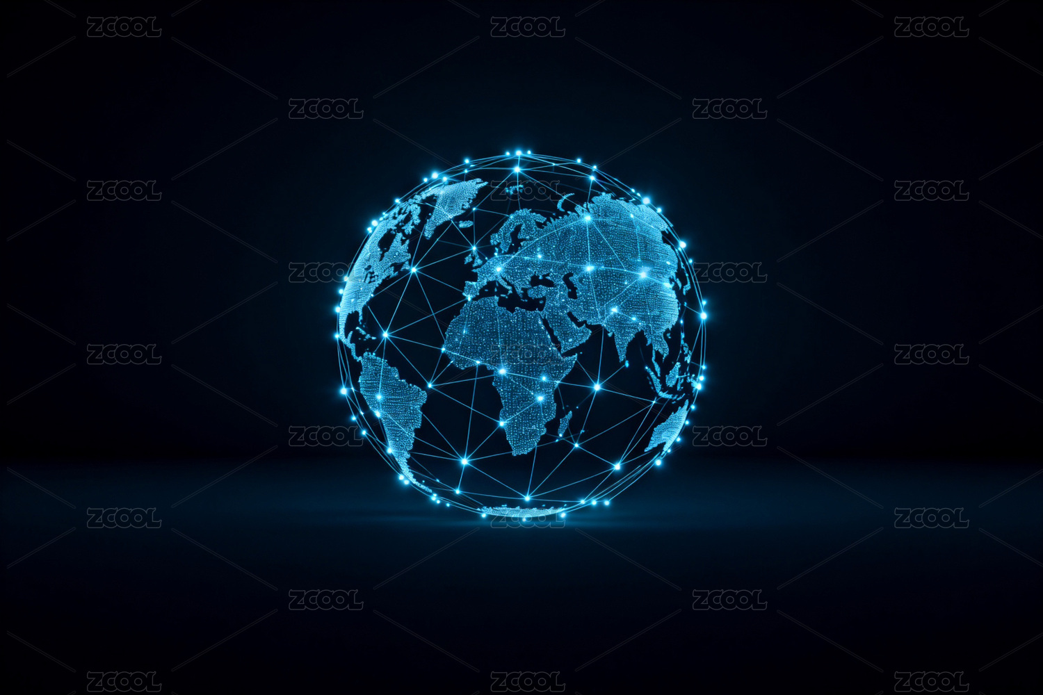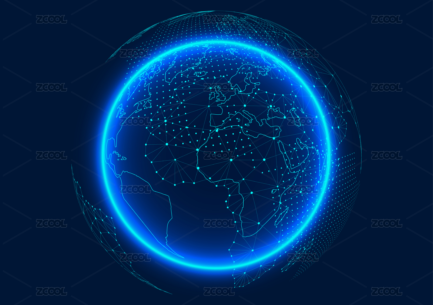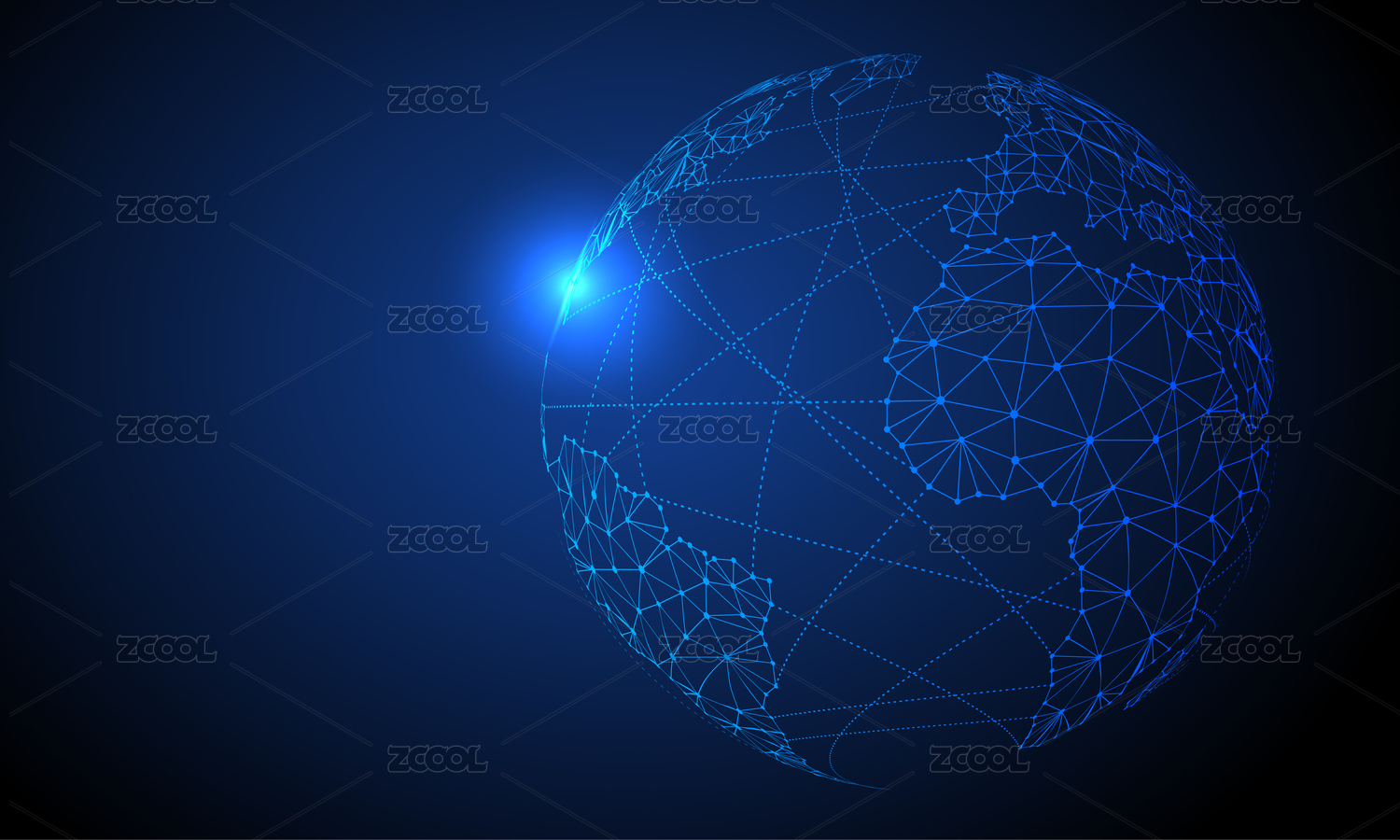 点和线连接组成的抽象地球,代表互联网、高科技,全球化、国际化