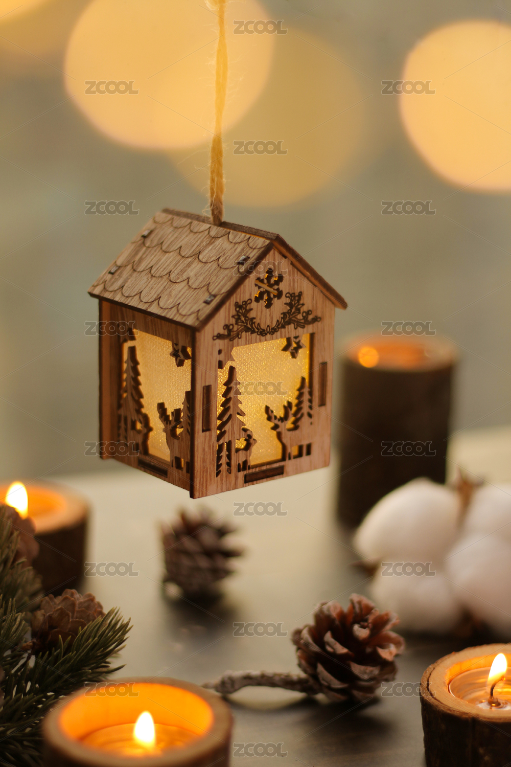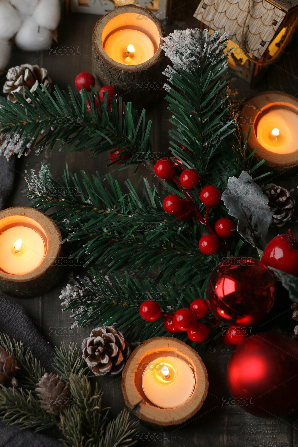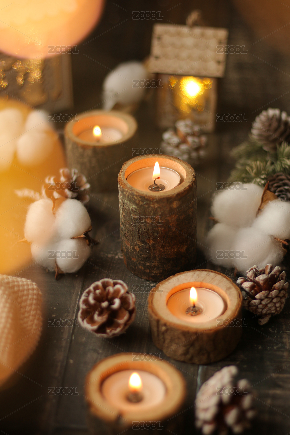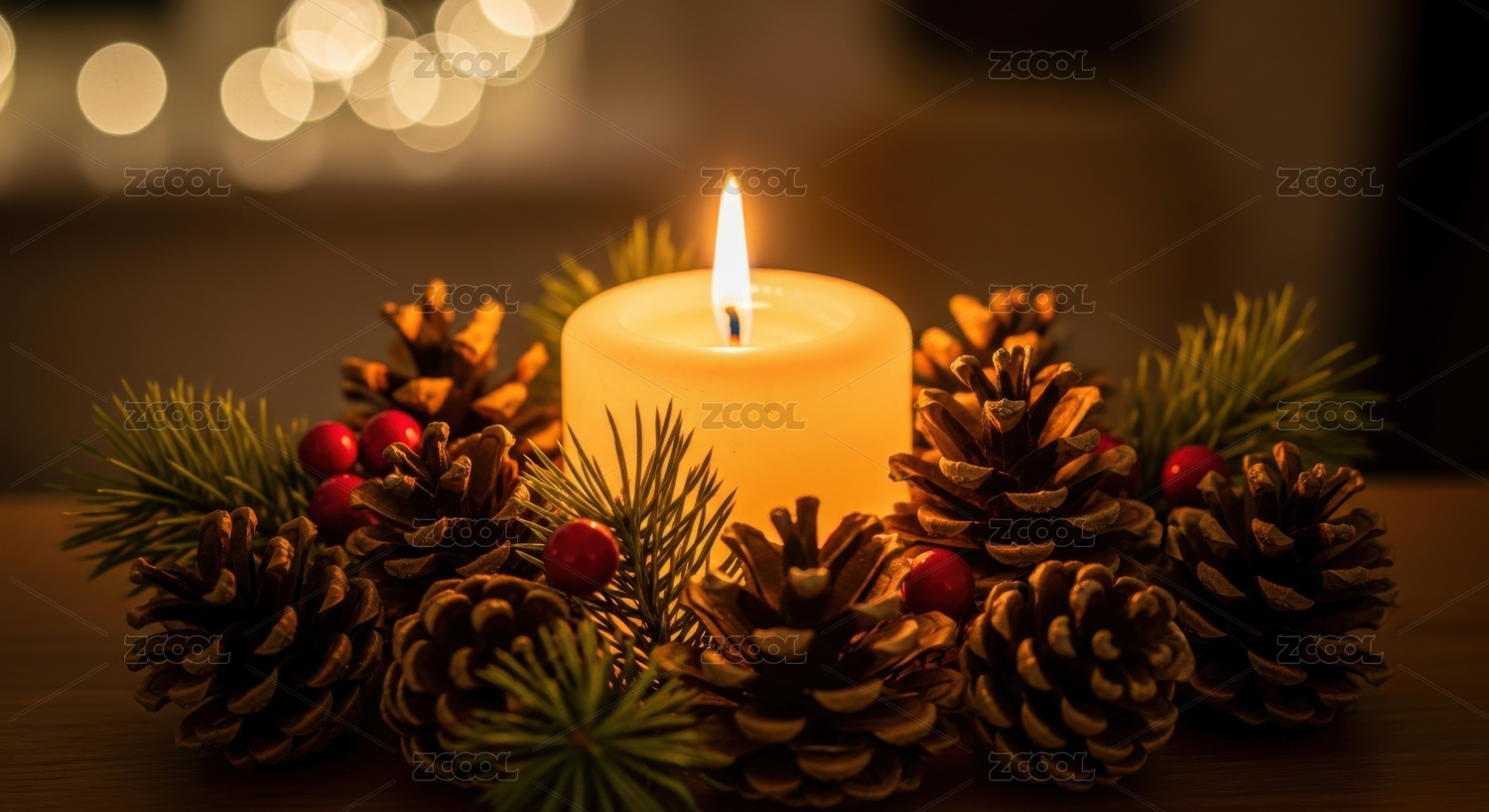 暗调,圣诞节,松果,蜡烛,烛台,光影,暖色,竖图,节日,氛围