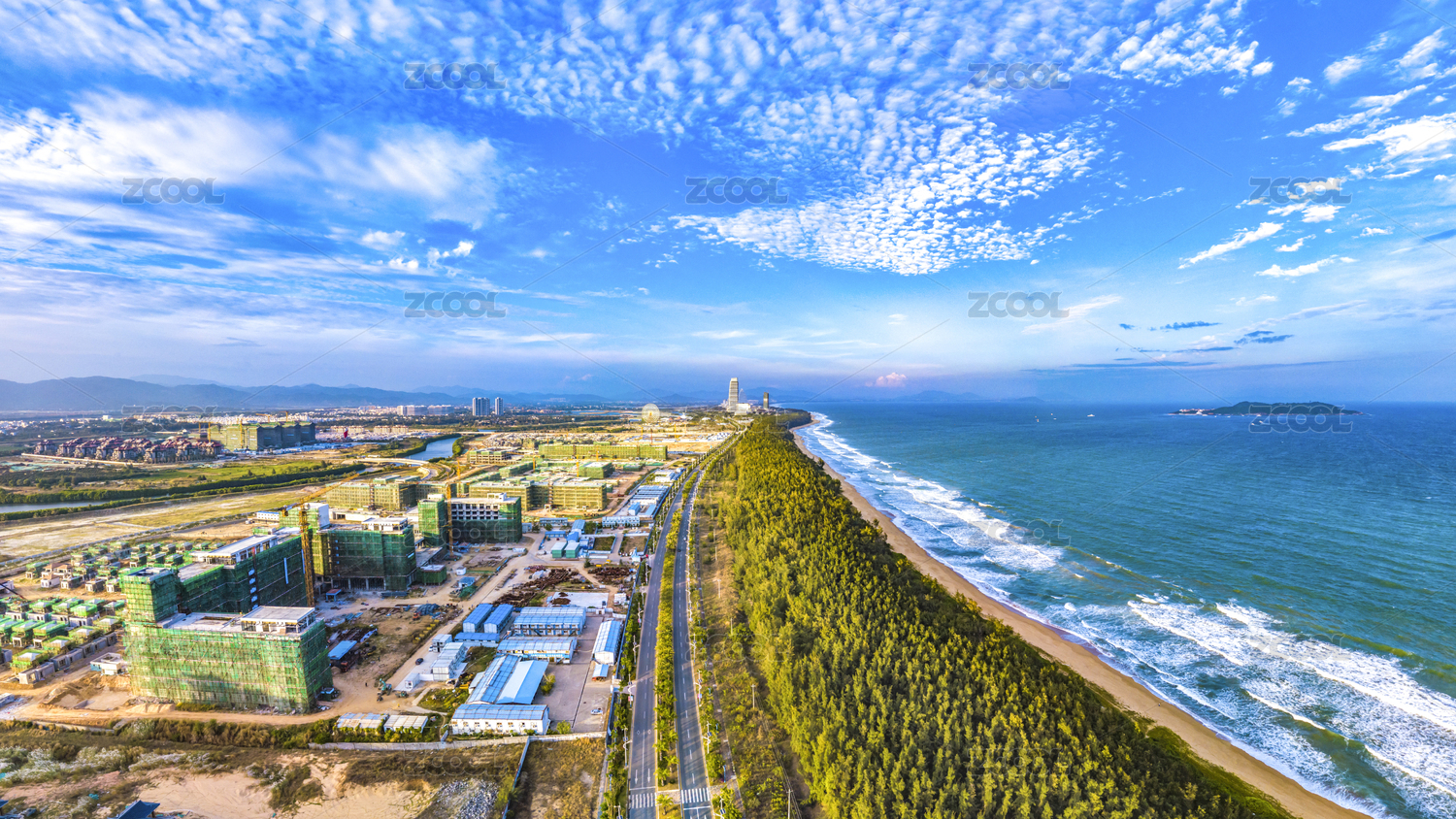 Aerial View of Resorts and Hotels under Construction at Haitang Begonia Bay in Sanya of Hainan Island of China