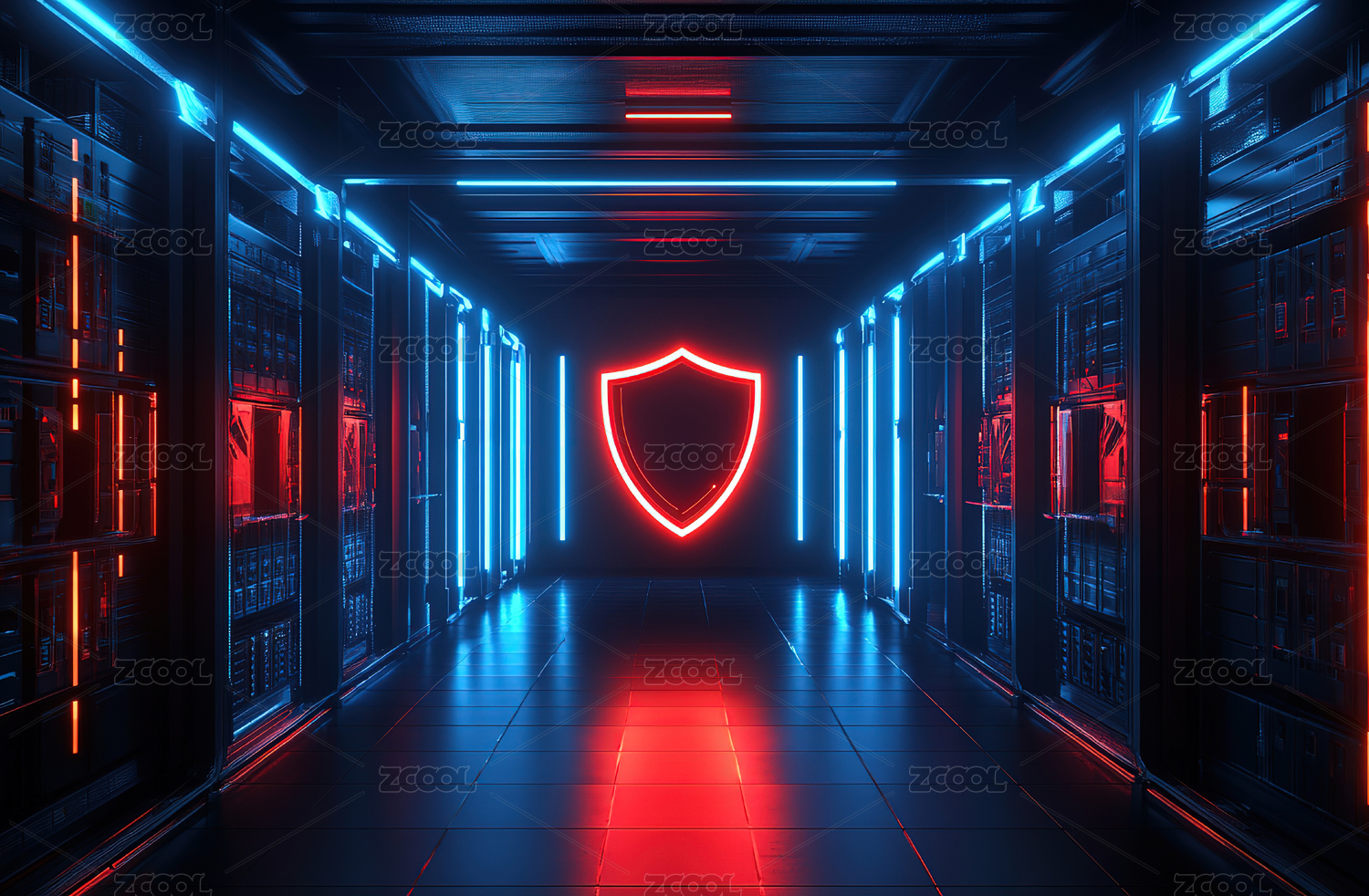 3D蓝色安全盾牌科技感背景互联网网络安全