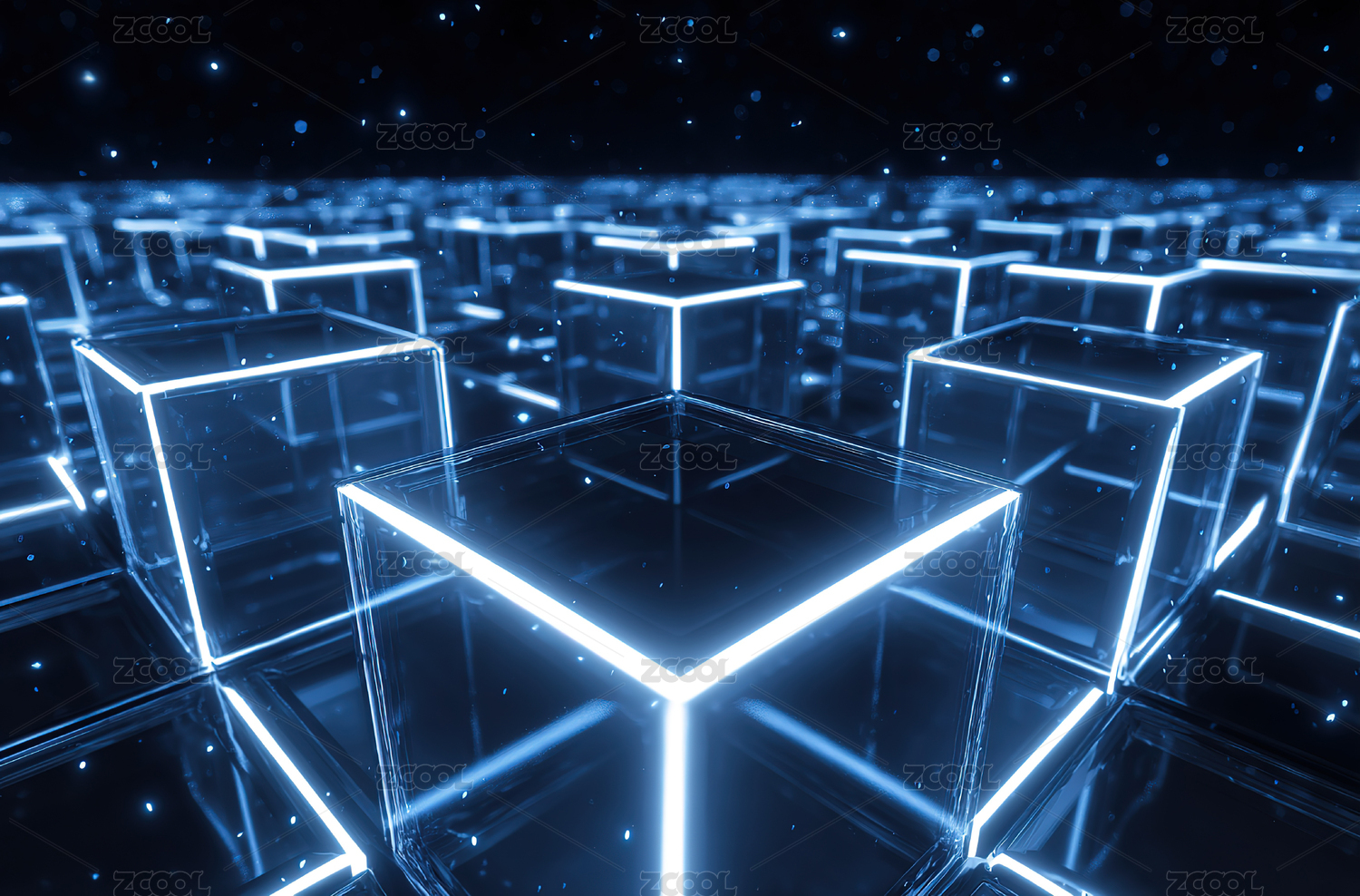 蓝色发光立方体网格科技感画面