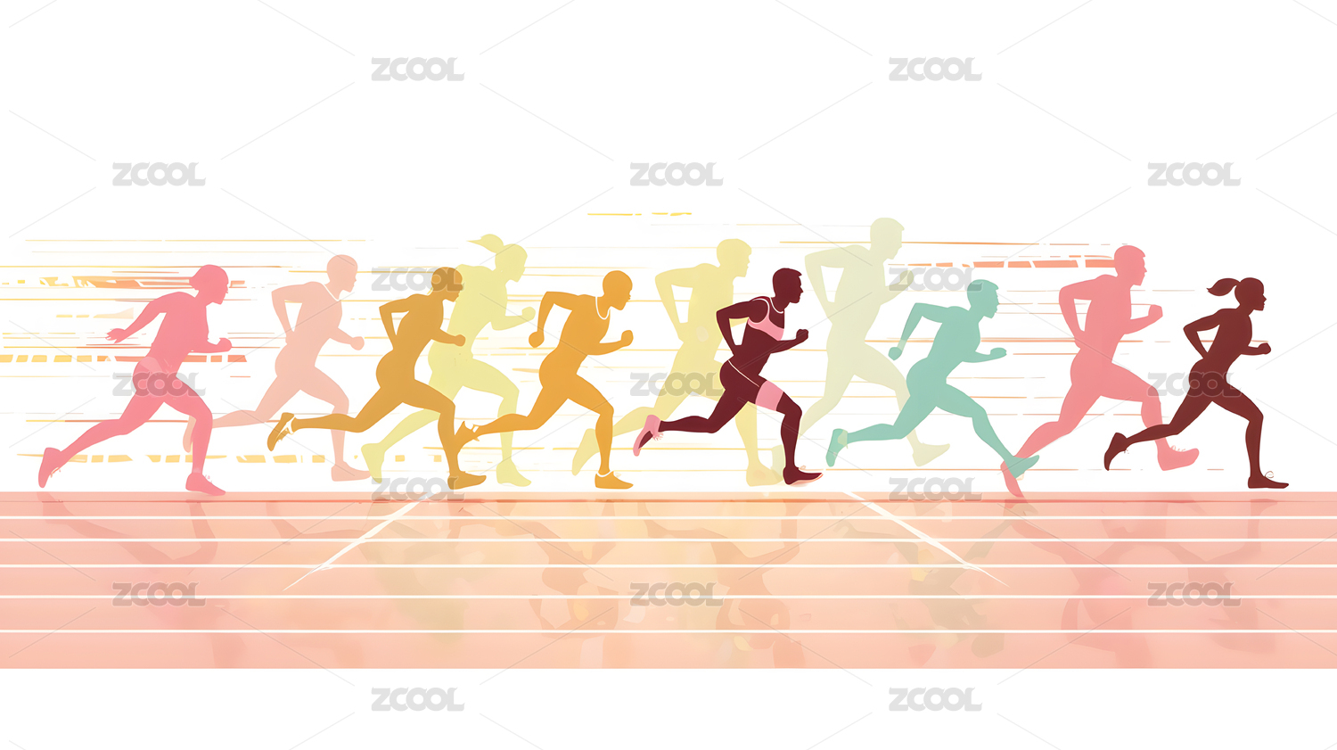 一组奔跑中的人物剪影插画