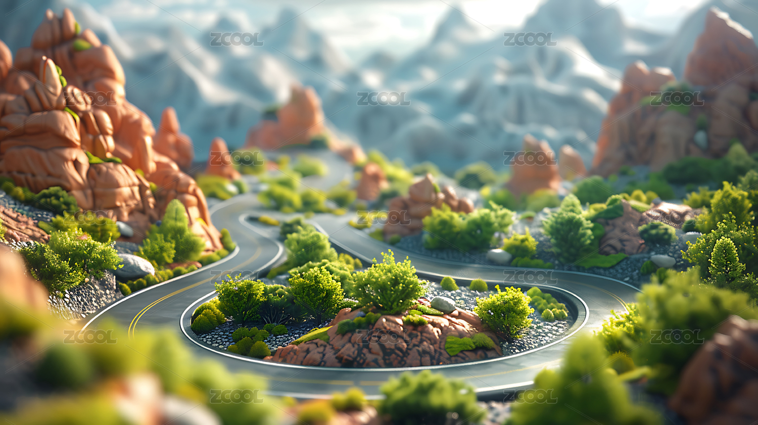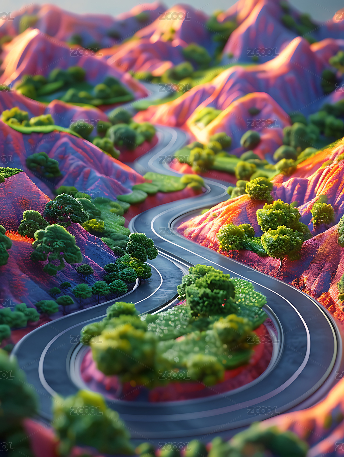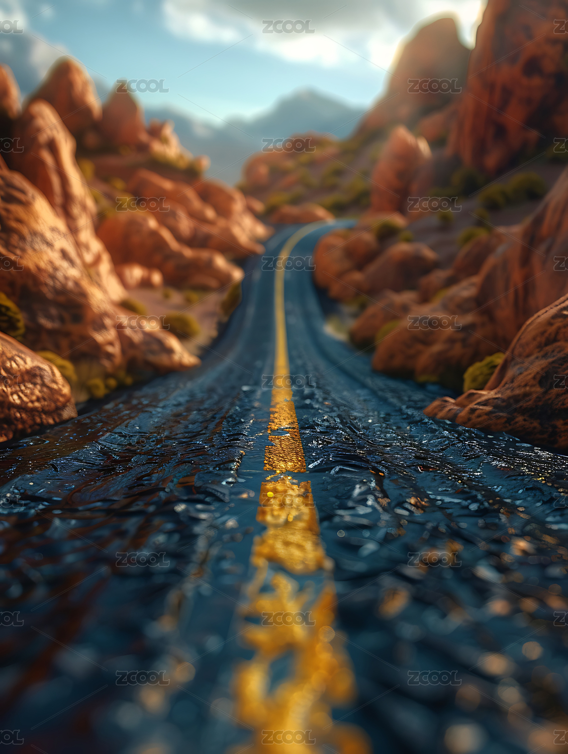 晴朗天气低面多边形沙漠上公路3D立体插画