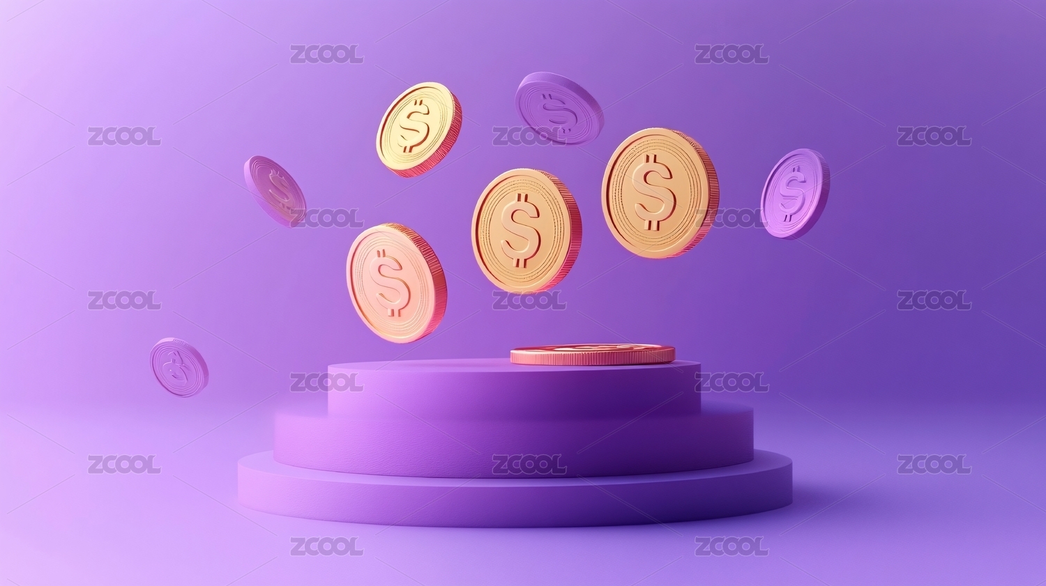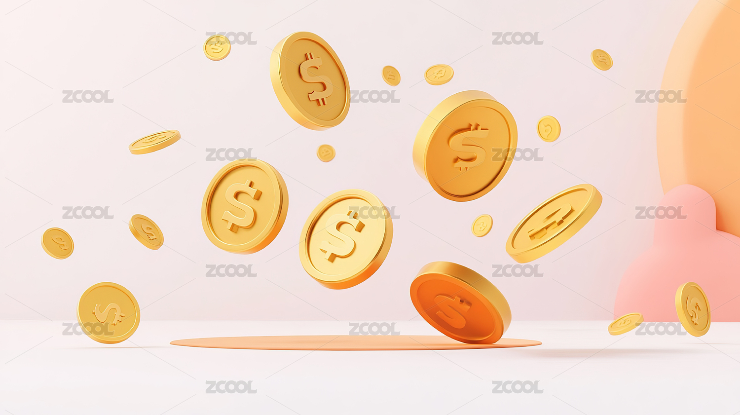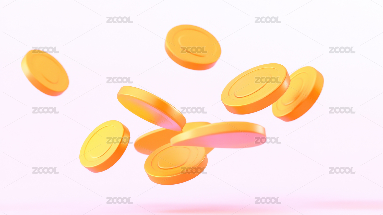 彩色背景下的彩色铅笔和硬币的高角度视图