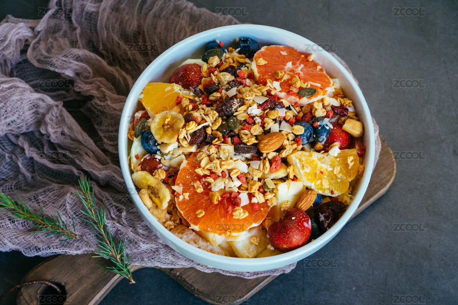 蓝莓火龙果香蕉水果燕麦沙拉健康早餐
