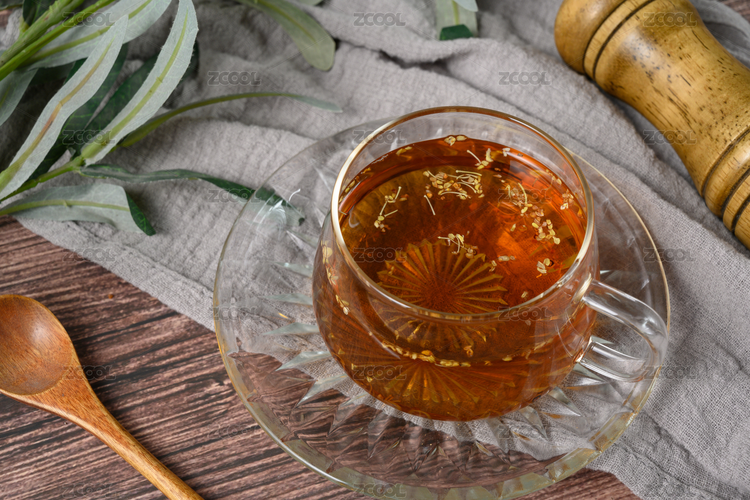 桌面上的杯子里的美味可口的桂花乌龙茶