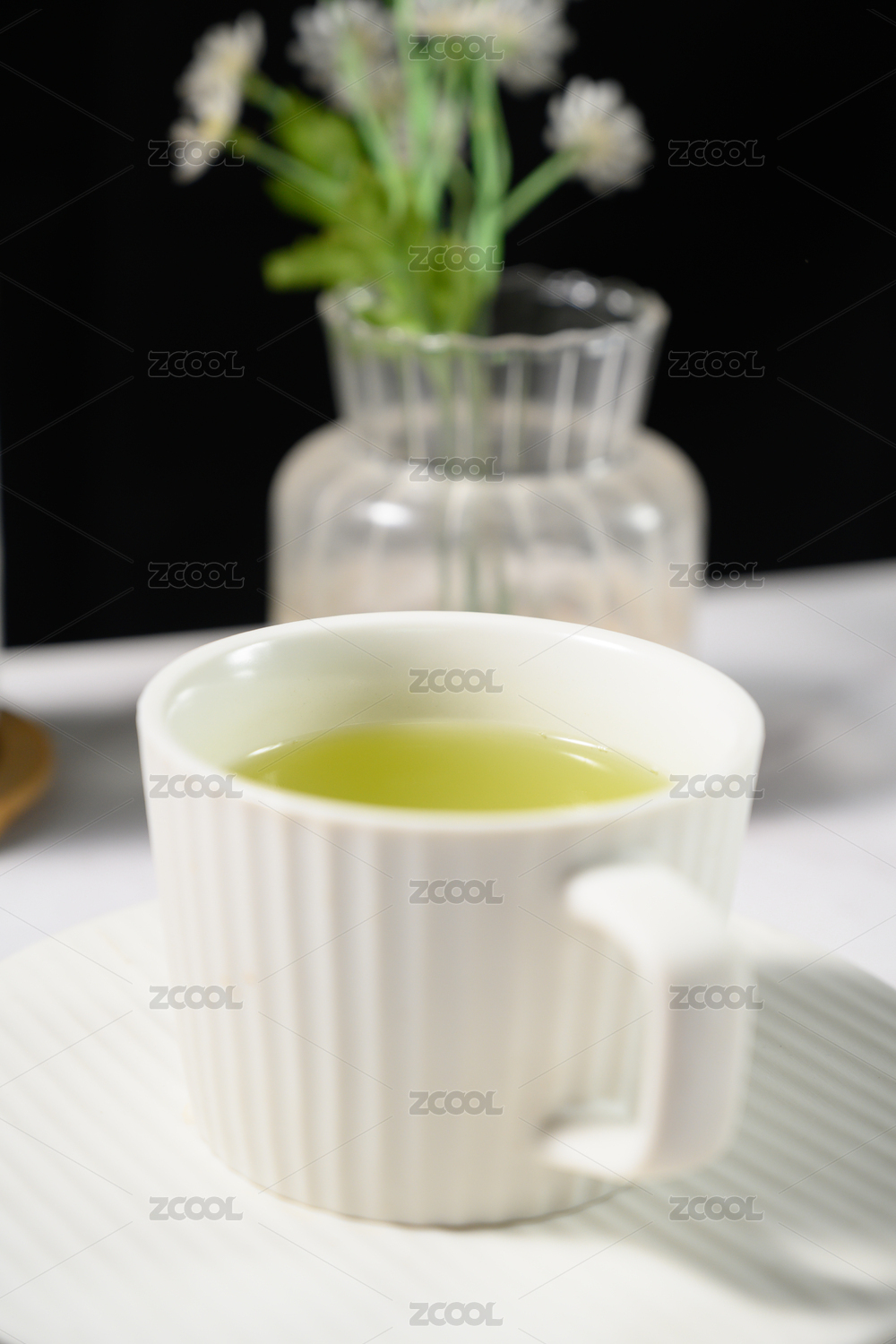 桌面上的杯子里的甘甜可口的茉莉吐珠茶