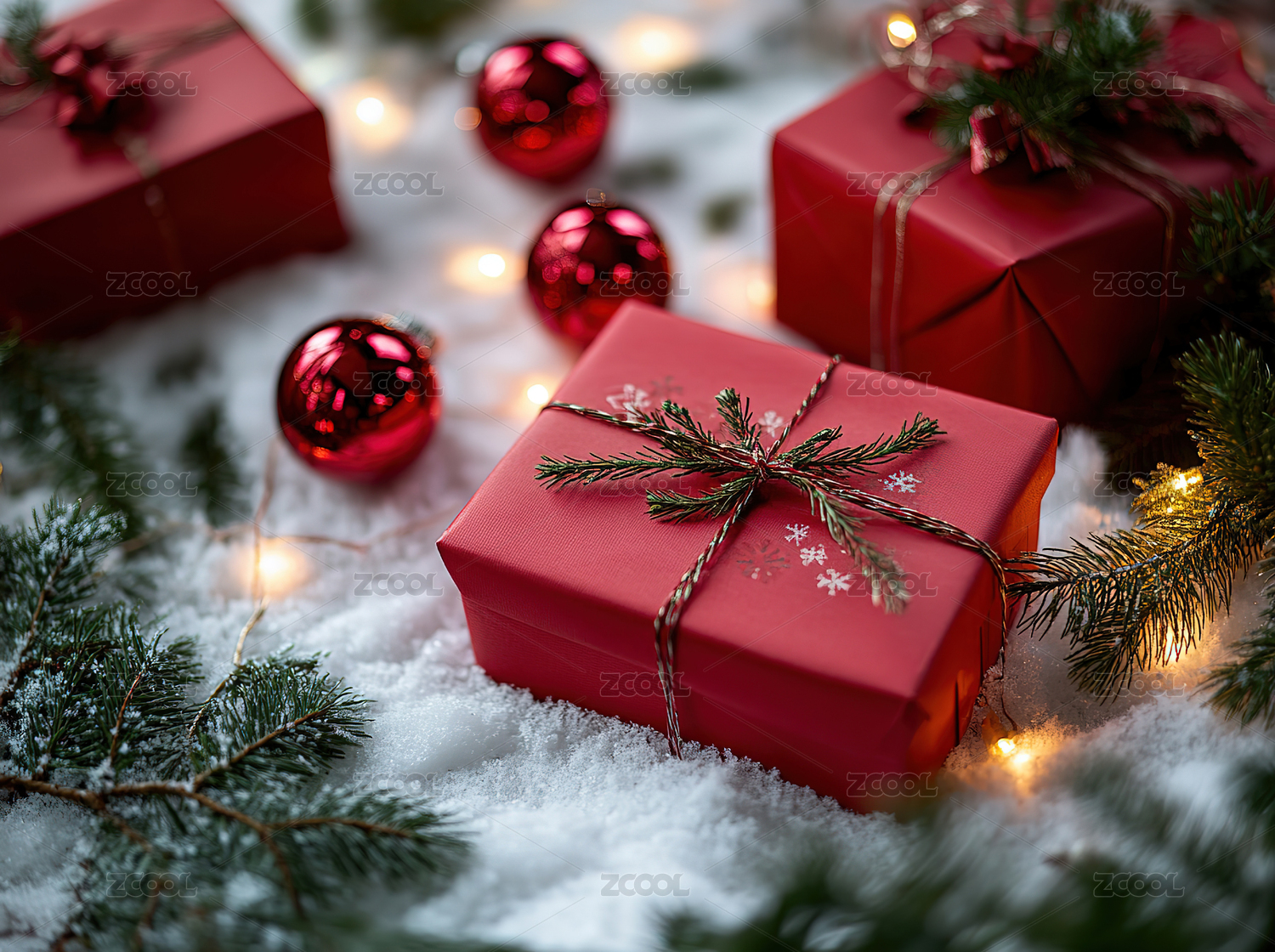 圣诞礼盒和圣诞节装饰品在白色背景上