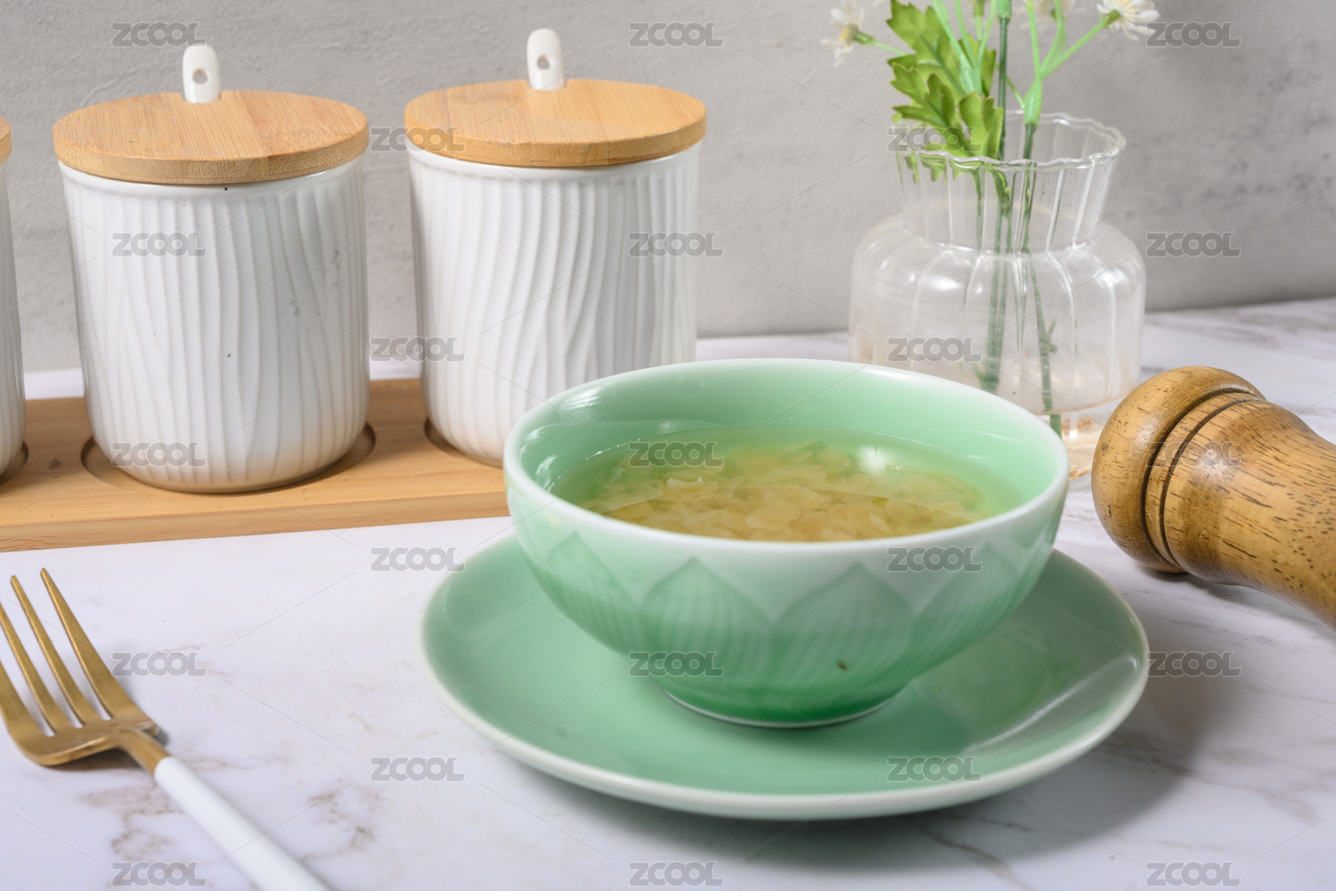 桌面上的碗里的美味可口的香菇鸡蛋汤