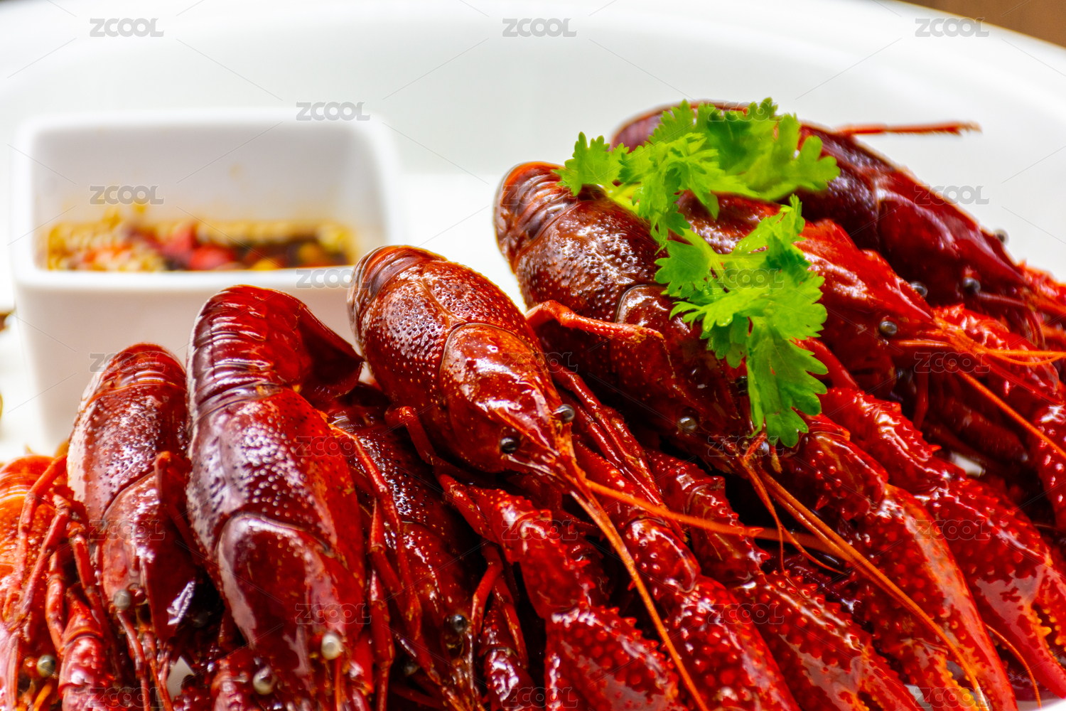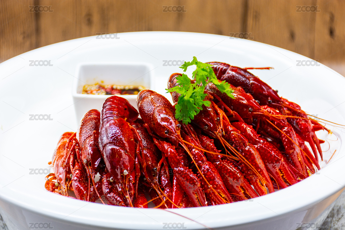 特色美食麻辣小龙虾整齐的摆放在大瓷碗中