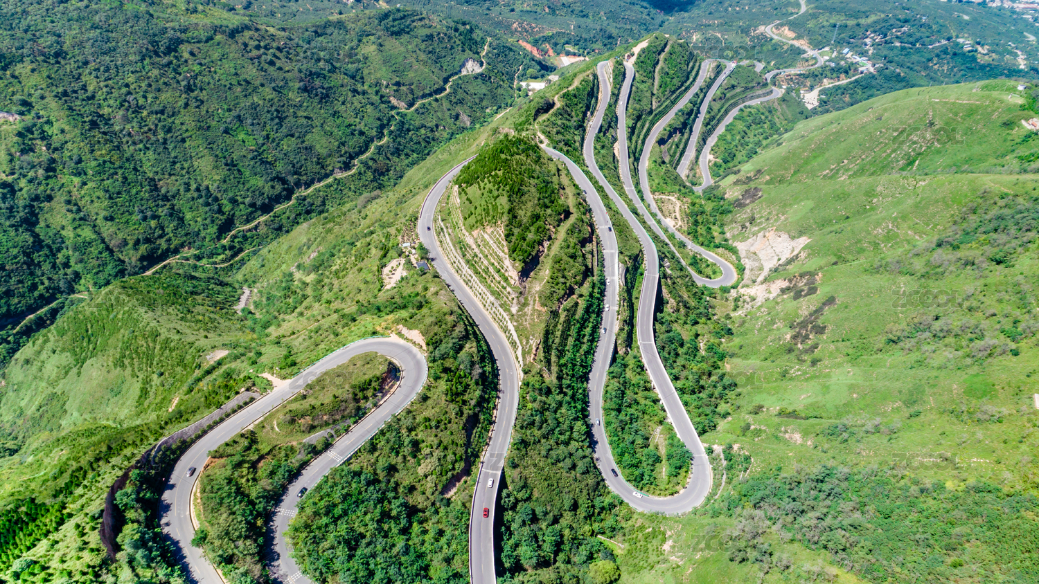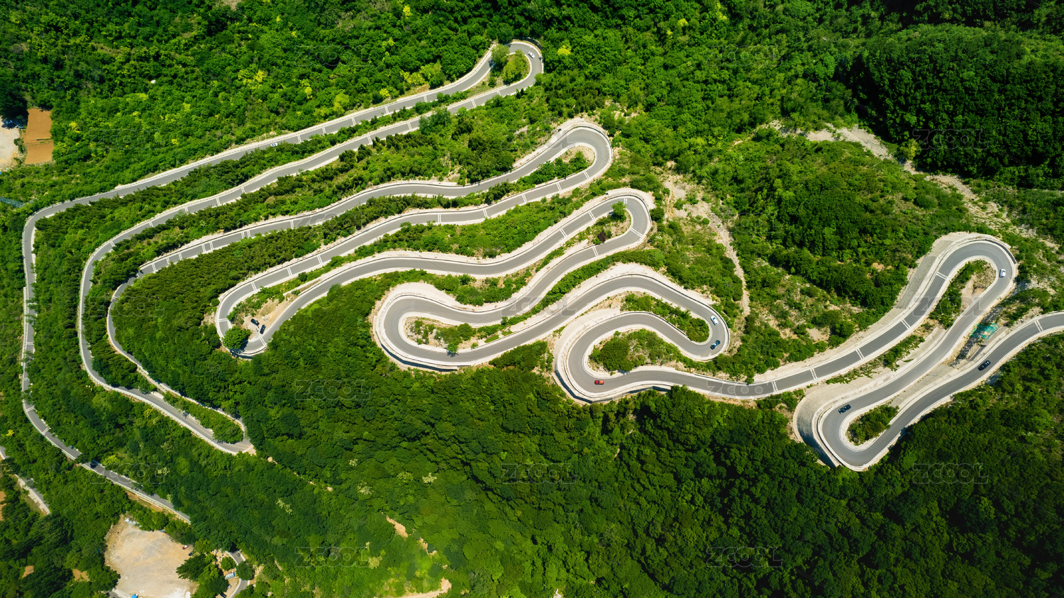 青州仰天山九龙盘蜿蜒山路夏日风景航拍