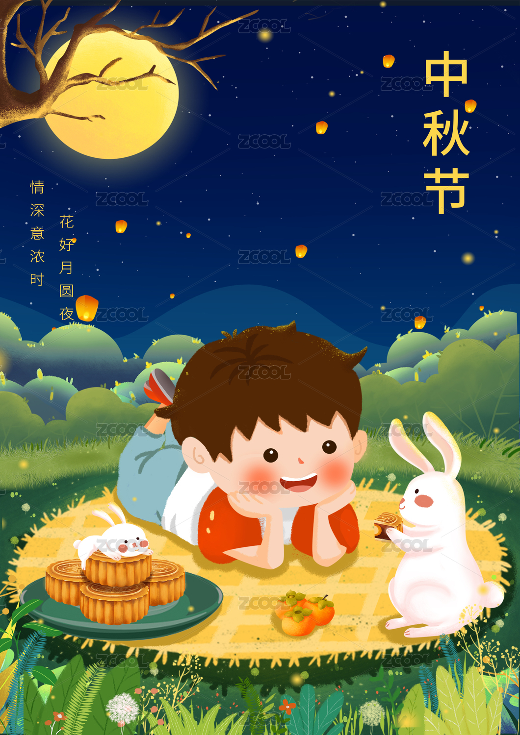 中秋佳节男孩和玉兔