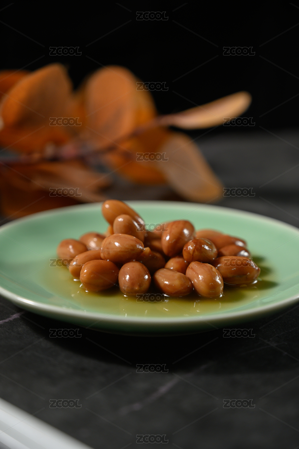 桌面上的盘子里的美味可口的香焖花生