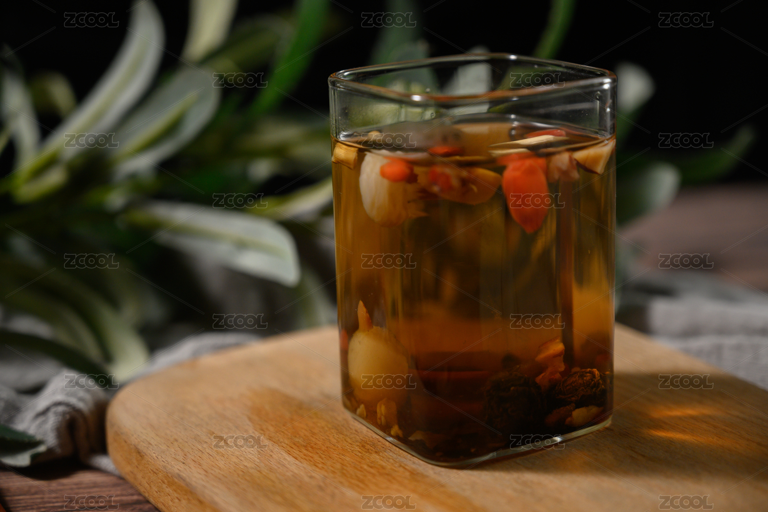 桌面上的杯子里的甘甜可口的胰岛果茶