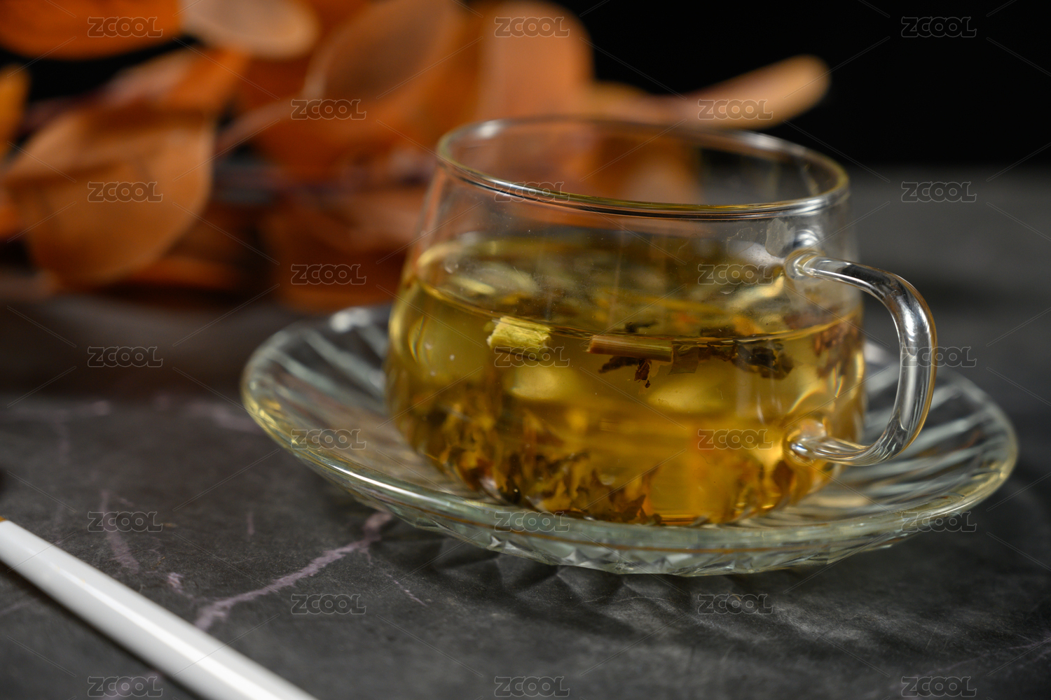 桌面上的杯子里的甘甜可口的辣木籽茶